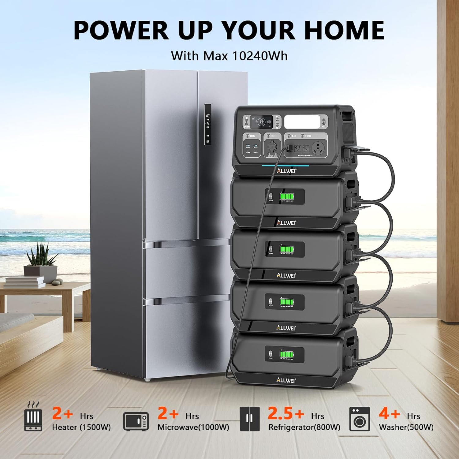 - 【Expandable from 2kWh to 10kWh】ALLWEI PPS2400-3 with 2048Wh B200 PRO LFP battery. Expand up to 10240Wh with 4x B200 PRO, ensuring uninterruptible power for all your needs during outages. Simultaneous Charge and Discharge.