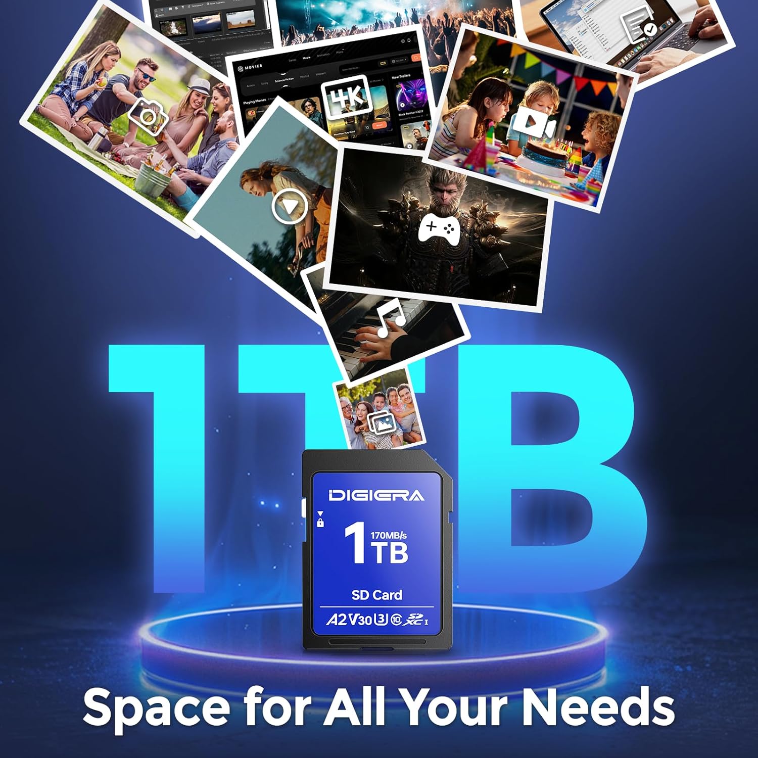 - 1T Ultimate Storage: With 1T of storage space, the DIGIERA memory card holds approximately 192,000 high-resolution photos or 45+ hours of 4K UHD video. Due to different capacity algorithms and partial capacity used for system files, management, and performance optimization, the available capacity may be less than the identified capacity