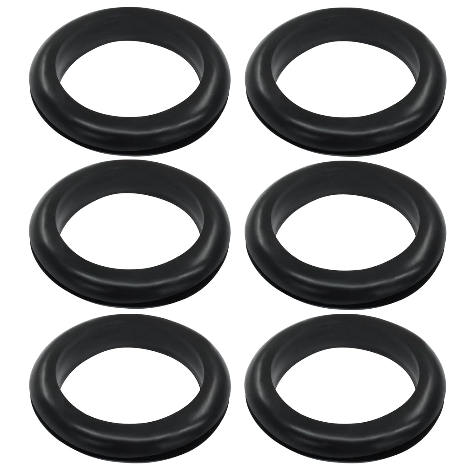 6 Pcs Rubber Grommets, 1-9/16" Inside Diameter 1-3/4" Drill Hole Rubber Wire Grommets O Ring Grommets for Wire, Firewall, Cables, Plugs, Automotive(Black)