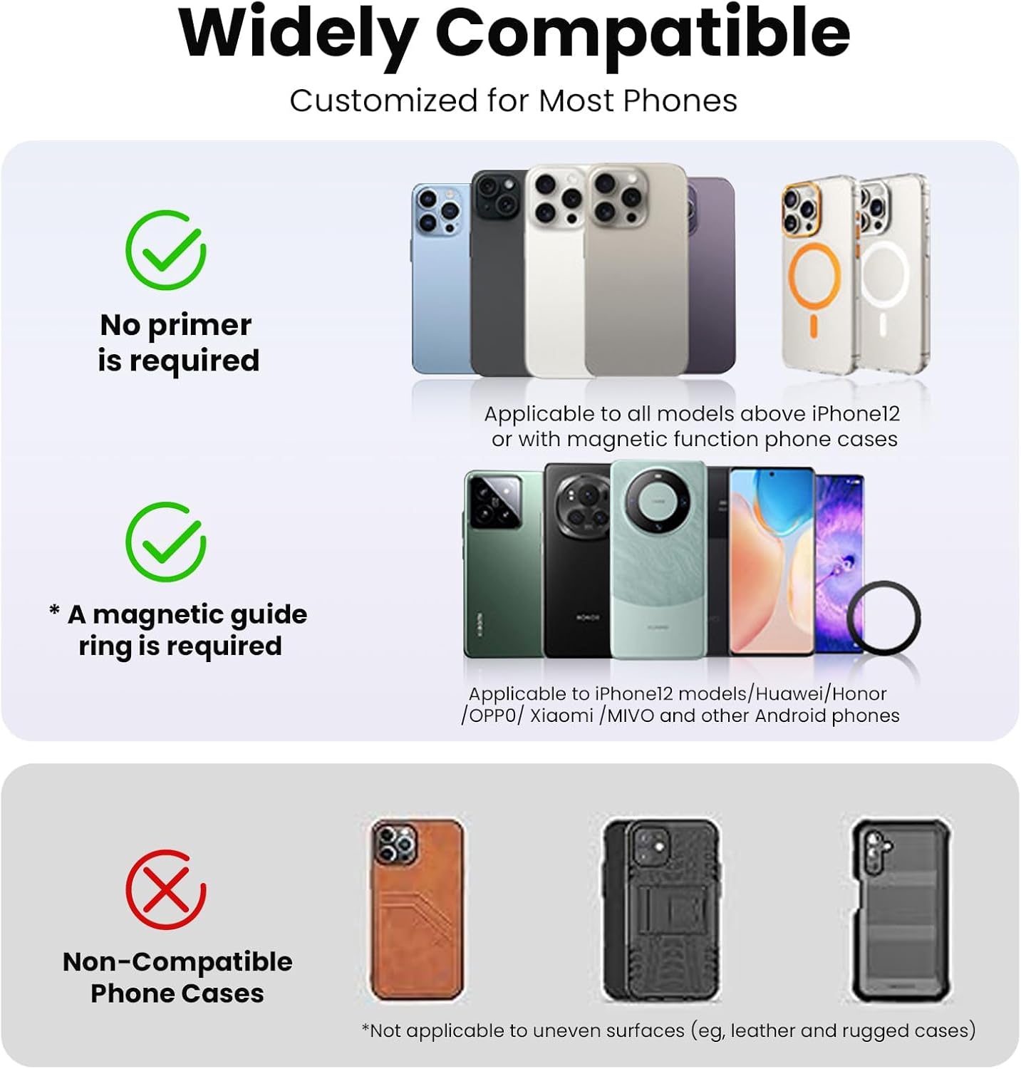 - Package includes: Magnetic Silicone Phone Grip + Metal Ring