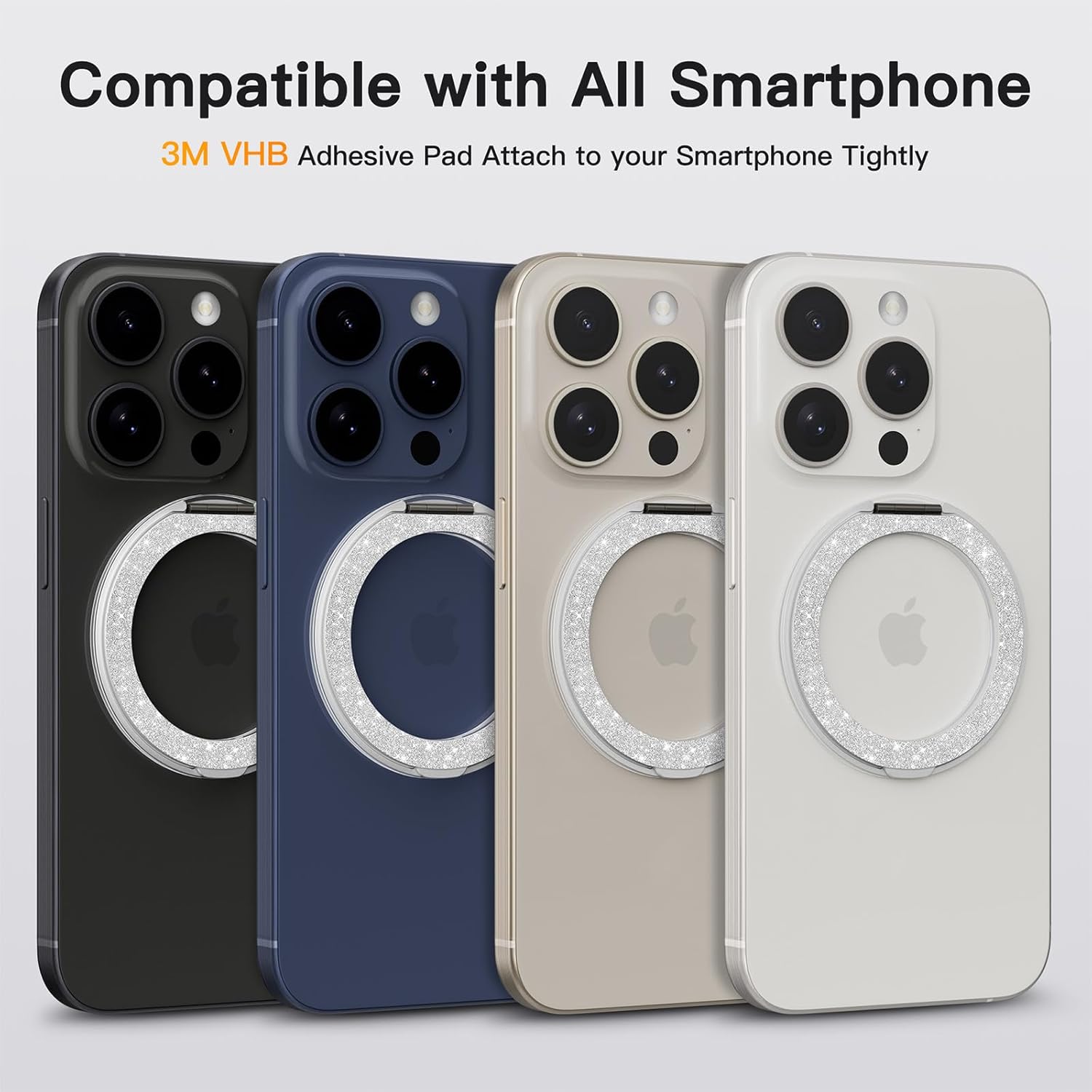 - [Compatible with All Cell Phones] This versatile phone ring grip is compatible with all smartphones, including the latest iPhone models (for iPhone 16 Pro Max 16 Plus 16 Pro 16 15 Pro Max 15 Plus 15 Pro 15 14 Pro Max 14 Pro 14 Plus 14 13 Pro Max 13 Pro 13 13, etc.), for Samsung Galaxy S10 S9 S8 S7 S6 and more. Whether you're using a MagSafe case or a regular case, this ring grip ensures a firm, reliable hold across a wide range of devices.
