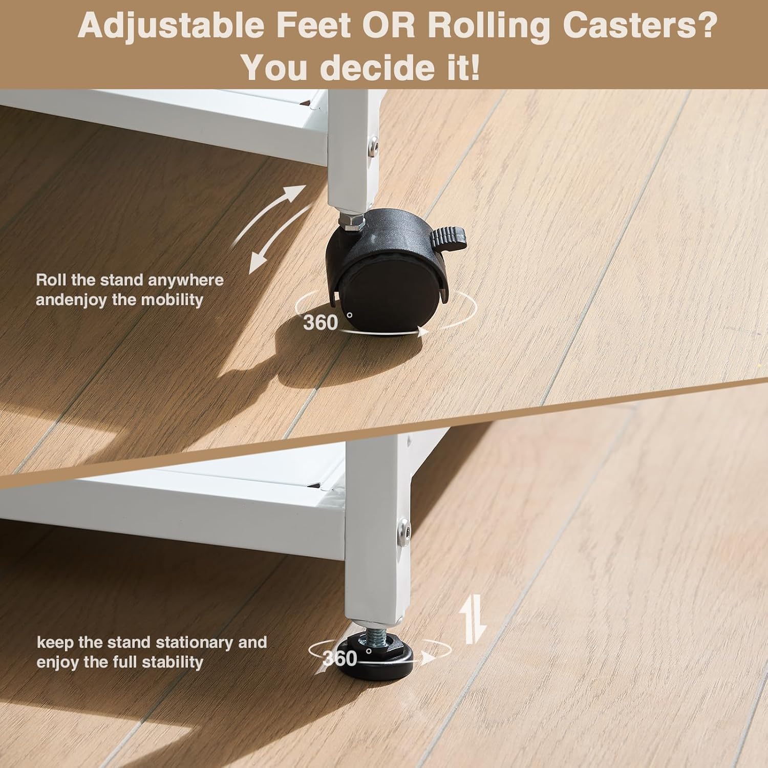 - Easy to Move & Stable When Stationary:The printer stand with storage has 4 wheels that can rotate 360°, and you can push the printer stand to wherever you want. 2 of the 4 wheels can be locked, allowing flexible movement while maintaining sufficient stability in the placement position of the printer stand. The printer stand also comes with 4 Adjustable Feet for you to choose upon your needs