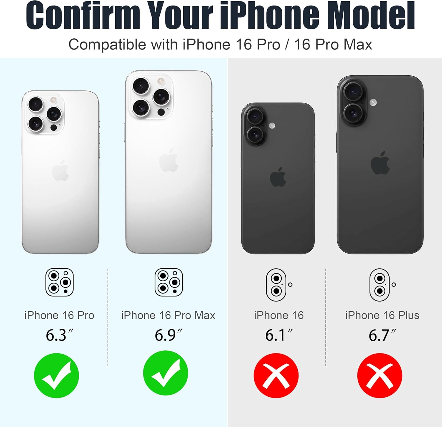 - ⭕[Confirm your iPhone Model] Compatible with iPhone 16 Pro (6.3-inch) and iPhone 16 Pro Max (6.9-inch) – the latest models released in 2024. Designed to fit the 3x raised camera array perfectly, ensuring zero obstruction for your photos and videos.