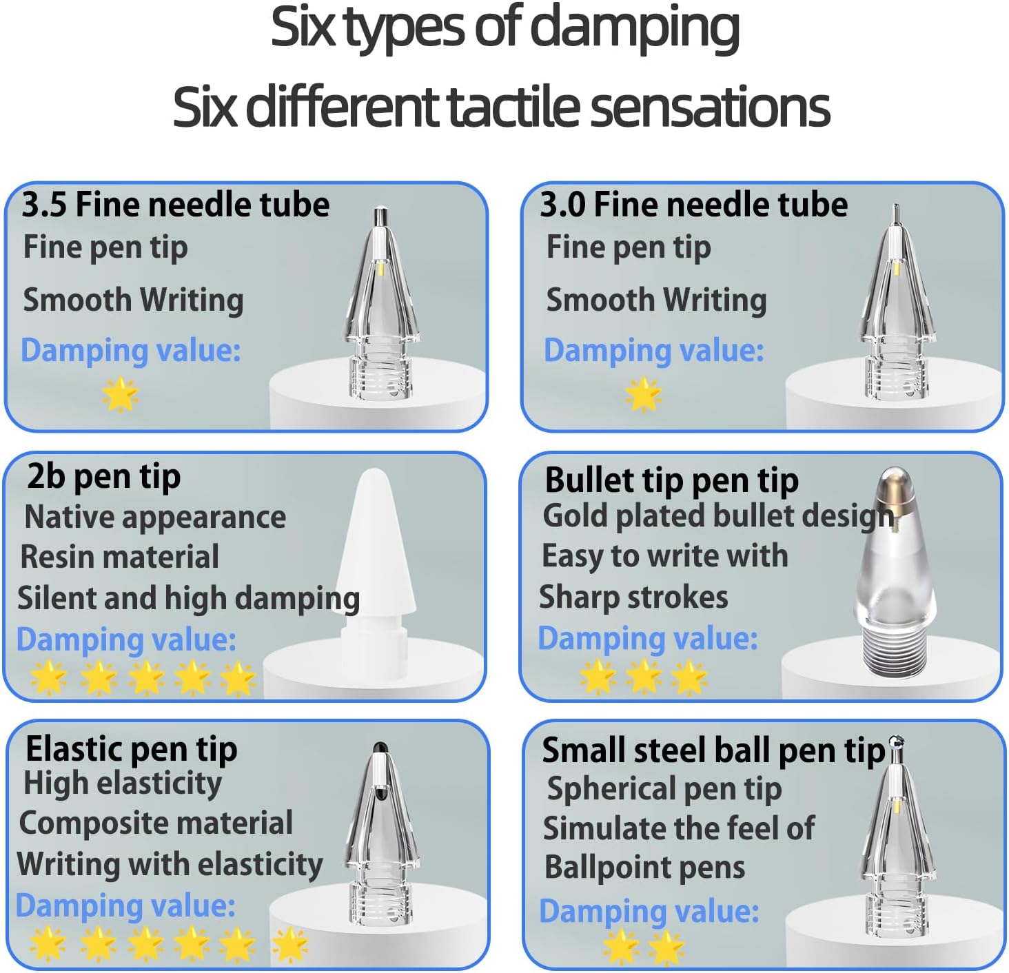 - 【6 Replacement Pencil Tips】: With a POM material tips, replacing the original pen nib, perfect for users who are used to the original tips; with 5 different metal nibs, it allows you to have precise control when writing or drawing, so the metal nibs feel better than the original nibs. The rounded corners of the metal nib are smooth and iPad-friendly, so you don't have to worry about scratching the screen.