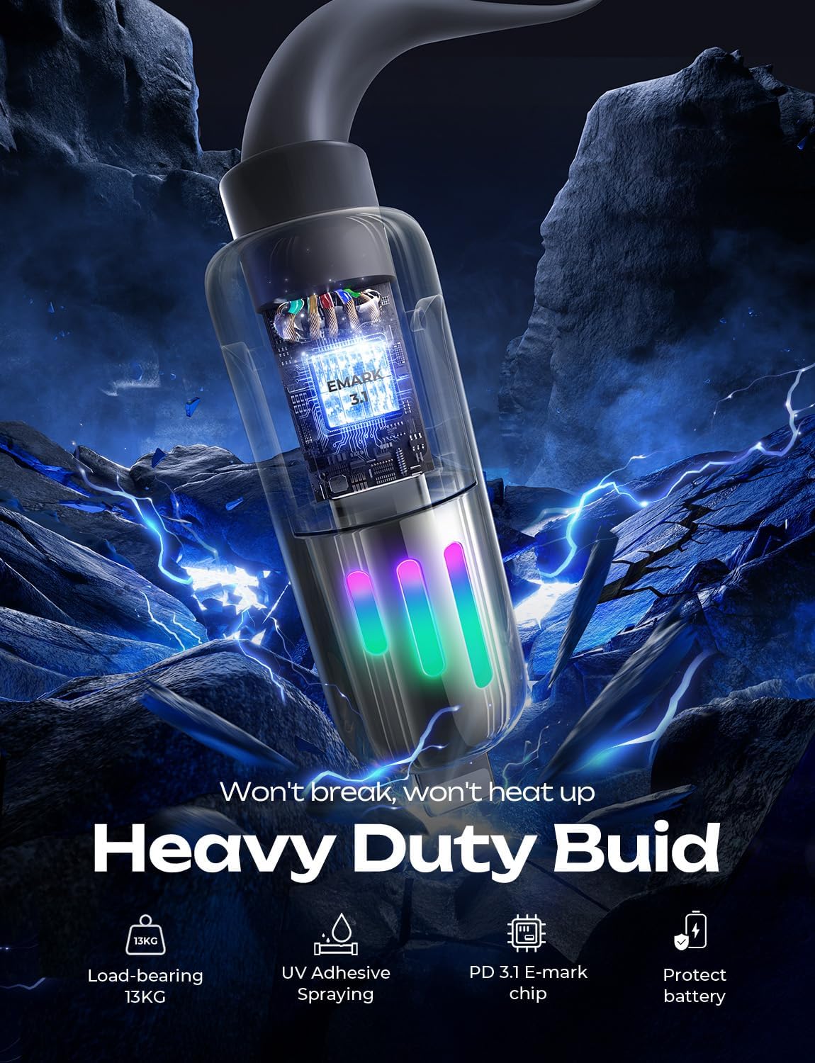 - [PD3.1 Emark Safe Chip & RGB light] The EMARK3.1 chip not only enables 240W fast charging but also maximizes device safety, ensuring 24-hour constant temperature charging. It automatically stops charging once the device is fully charged, preventing overcharging and battery damage. And RGB lights on both ports will keep changing colours when charging. It is a soft light, not flashing eyes, full of gaming atmosphere.