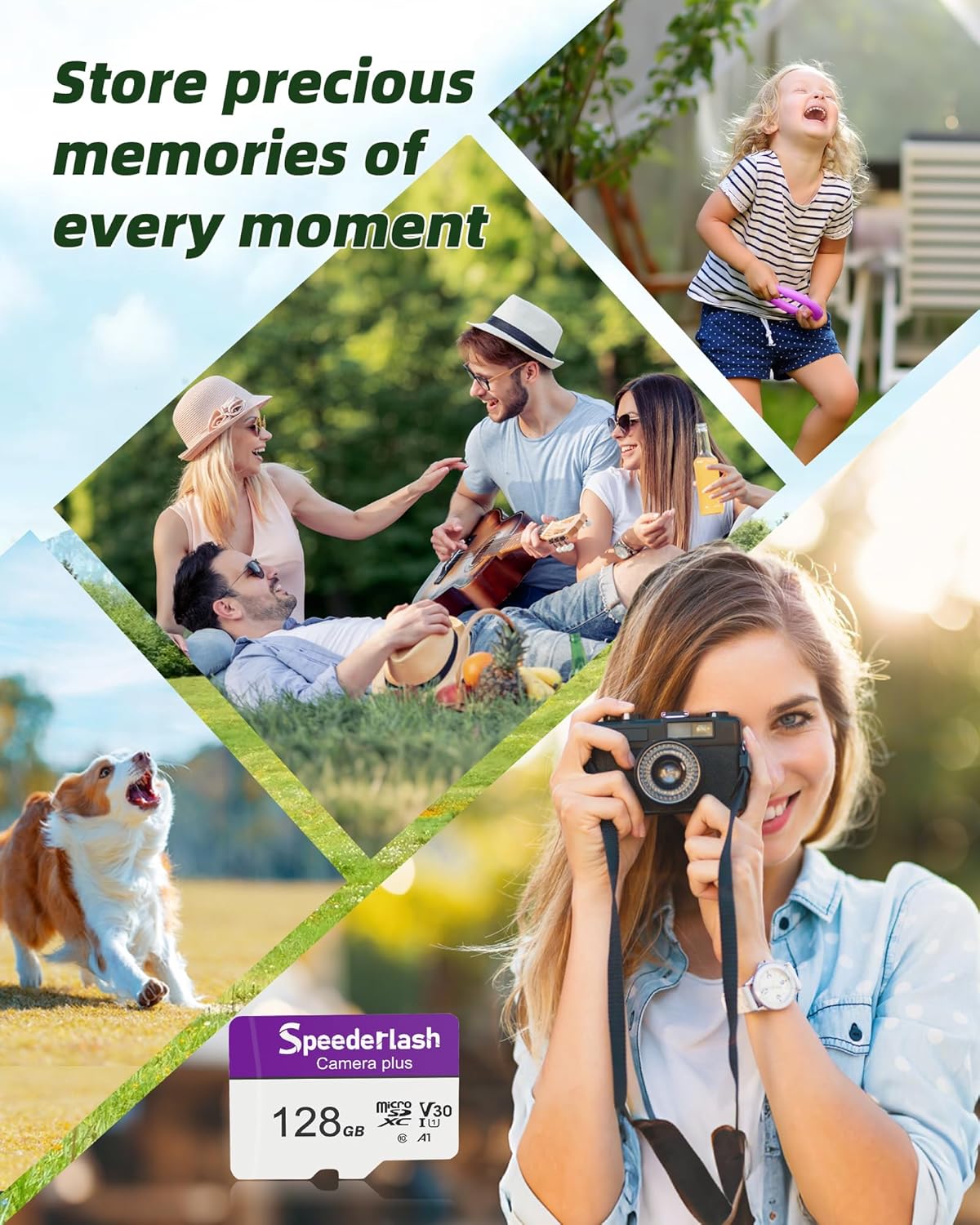 Micro SDXC Memory Card 128GB 2 Pack, Speederlash Camera Plus TF Card with Adapter, 90MB/s Read Speed, 4K UHD&5K Video Support, U1 V30 A1 Rated, Waterproof, for Gaming Devices, Drones, Smartphones