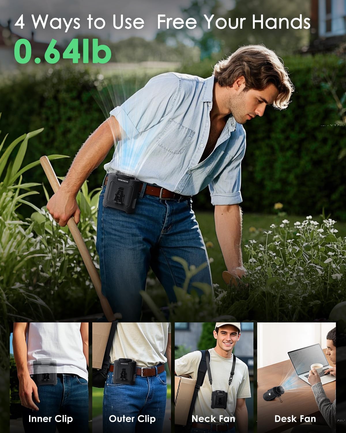 - 【Durable with Anti-Slip Silicone Cover】Designed for outdoor use, this body fan is ideal for workers, farmers, and couriers. The protective silicone cover absorbs impact, preventing damage if dropped. The upgraded manganese steel clip offers a firm grip and enhanced durability, with a dual-clip design for versatile wearing options.
