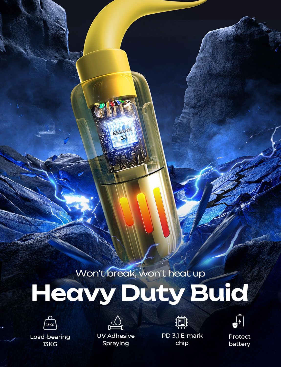 - [So Strong Heavy-Duty Thickened Silicone] The heavy-duty USB-C cable boasts an impressive 50,000+ bend lifespan! Made from food-grade, skin-friendly silicone with a baby-soft touch, it’s tangle-free, waterproof, and easy to clean. The sturdy zinc alloy housing is 1000 times stronger than plastic, ensuring consistent and reliable charging every time. The stylish leather strap keeps storage neat and organized, offering ultimate convenience.