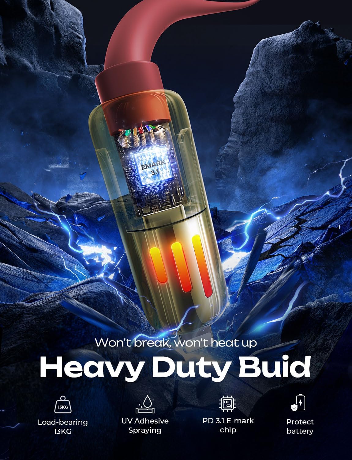 - [PD3.1 Emark Safe Chip & RGB light] The USB C to USB C Cable EMARK3.1 chip not only enables 240W fast charging but also maximizes device safety, ensuring 24-hour constant temperature charging. It automatically stops charging once the device is fully charged, preventing overcharging and battery damage. And RGB lights on both ports will keep changing colours when charging. It is a soft light, not flashing eyes, full of gaming atmosphere.