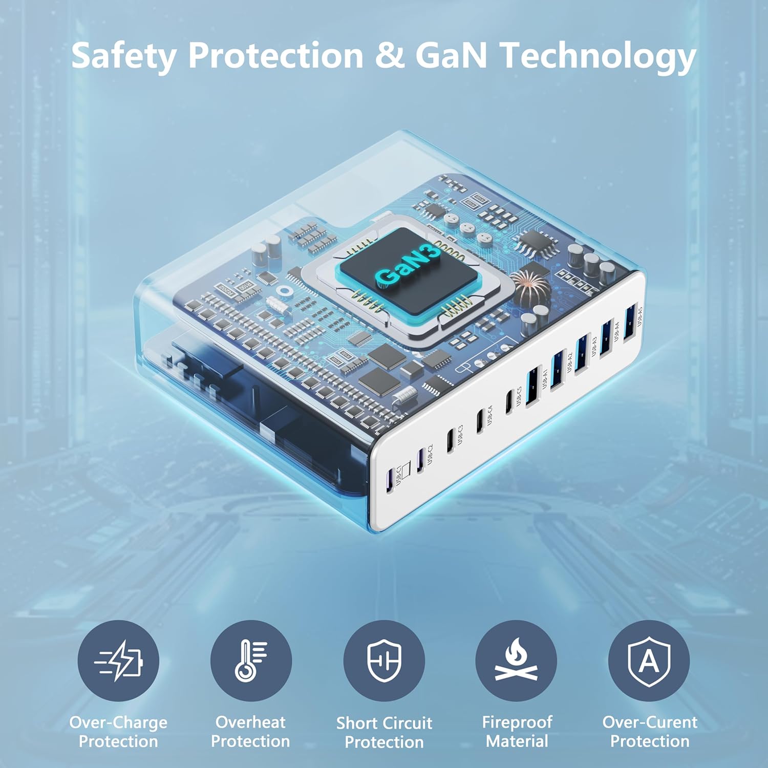 - Multiport USB-C & A Charging Station: Boasting to charge up to 10 devices at once, this versatile charging block features 5 USB-C ports and 5 USB-A ports. The dedicated USB-C port powers newer electronics like laptops, while the legacy USB-A ports support older devices. Unlike most chargers with false advertising and outputs that slow down when multiple ports are used.