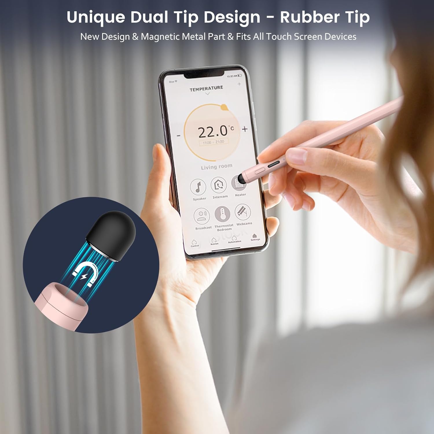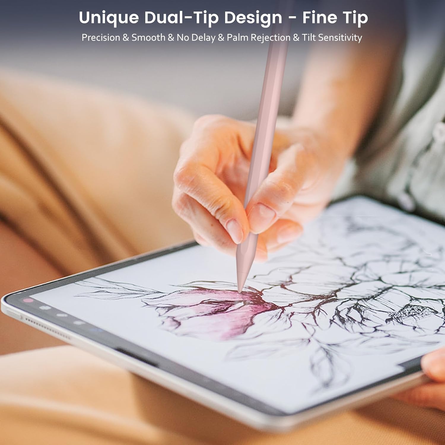 Stylus Pen for iPad, Dual-Tip 13 mins Fast Charge Pencil for Apple, Palm Rejection, Tilt Sensitivity, Compatible w/iPad 6/7/8/9/10, Pro 11/12.9in/M4, Air 3/4/5/M2, Mini 5/6 - Pink