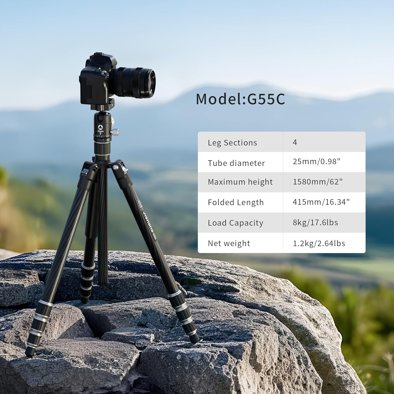 - Sturdy & Stable Tripod – Constructed from premium carbon fiber and metal, this carbon fiber tripod provides exceptional load capacity and durability. It supports a maximum load of 26.46 lbs while maintaining a lightweight frame of only 2.65 lbs, offering a perfect balance of strength and stability for professional use