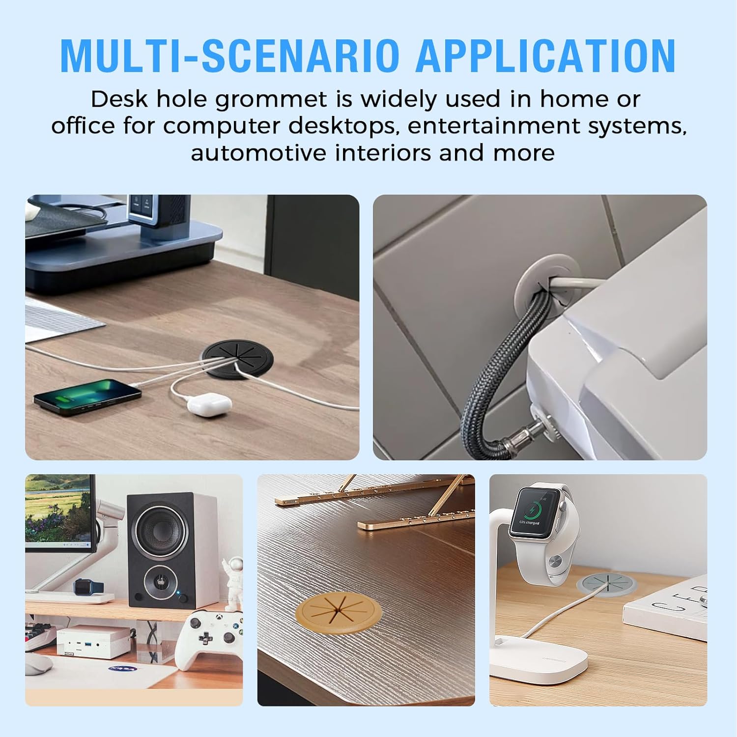 - Maintain Safety: The desk wire hole insert helps to organize cables on your desktop, keeping it tidy and improving productivity; Cable grommet smooth surface protects cables from sharp edges, reduces bending and pulling of cables, extends cable life and ensures a safe work area