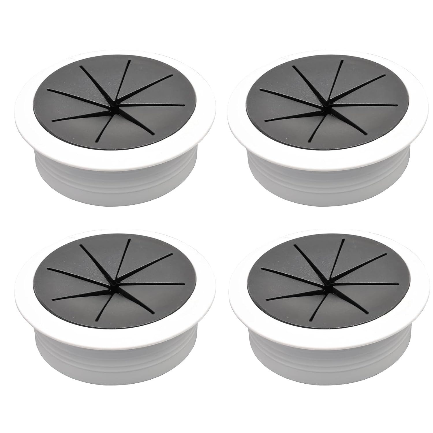 - Dimension and Quantity: 4 white and black desk grommets, flower shape desk cord hole cover 2 inch (50 mm) diameter, 2.36 inch (60 mm) overall diameter, 0.8 inch (20 mm) height, 1.57 inch (40 mm) through-hole diameter, 0.1 inch (2.5mm) thicker
