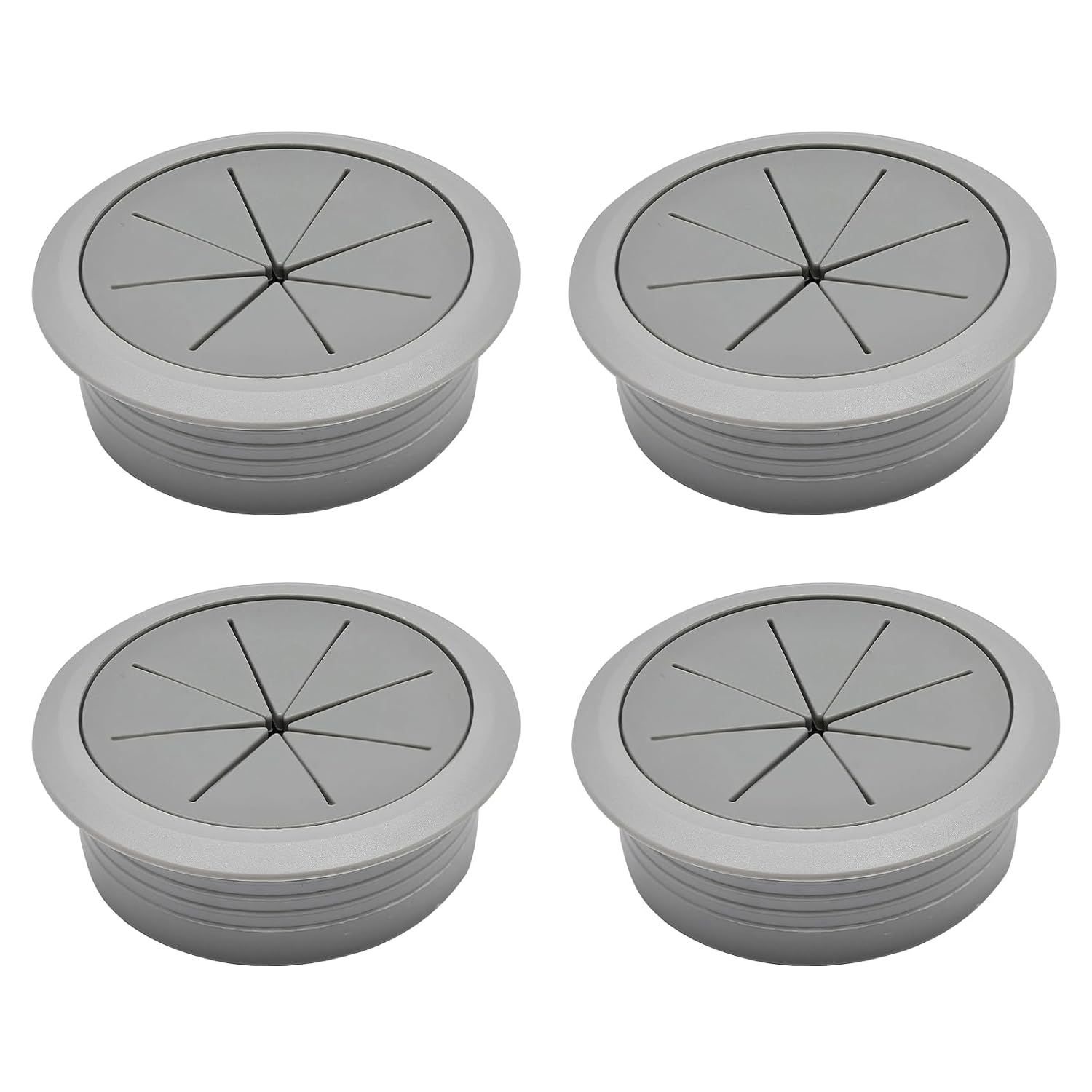 - Dimension and Quantity: 4 dark grey desk grommets, flower shape desk cord hole cover 2 inch (50 mm) diameter, 2.36 inch (60 mm) overall diameter, 0.8 inch (20 mm) height, 1.57 inch (40 mm) through-hole diameter, 0.1 inch (2.5mm) thicker