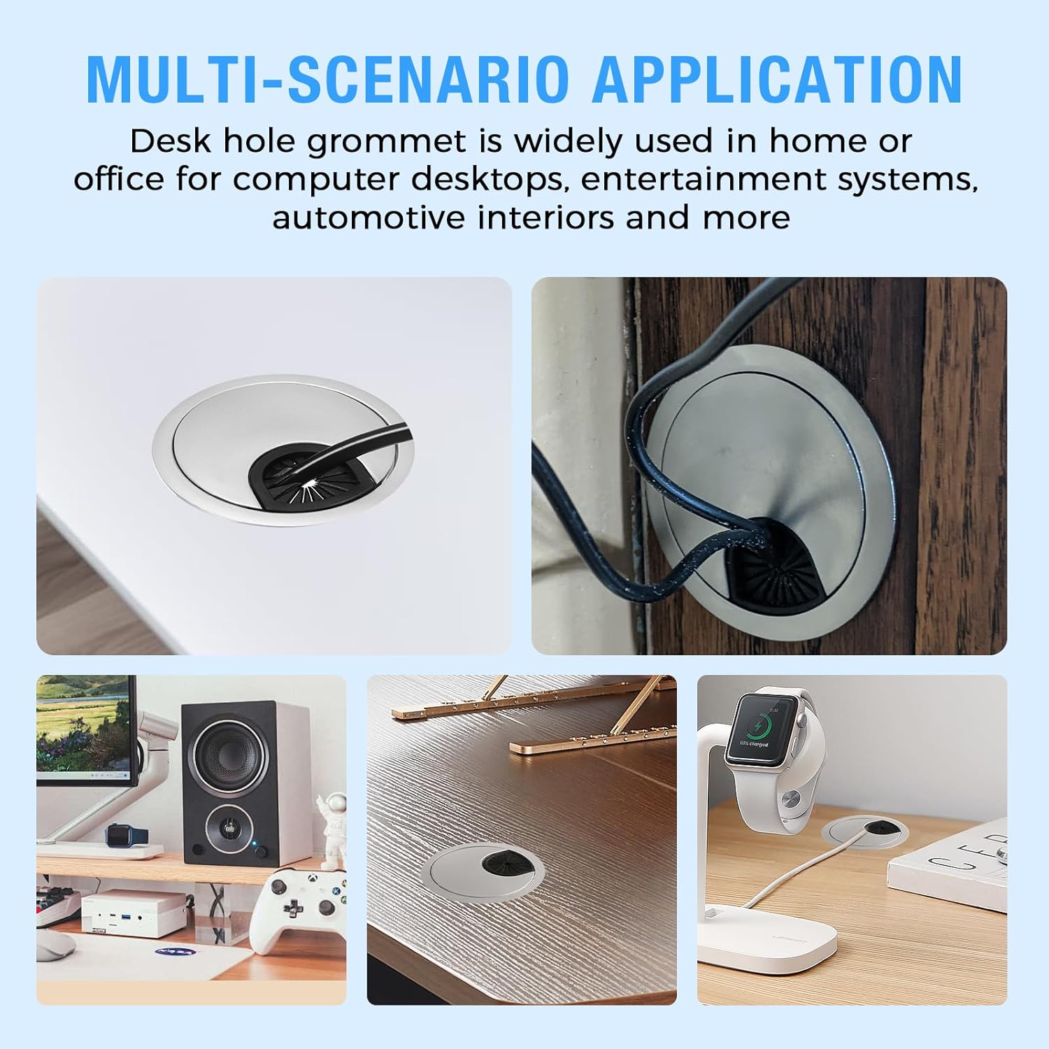 - Wide Applications: The desktop grommet is not only limited to computer countertops, computer components, office desks, office equipment; It is widely used in dressers, lockers, wall cabinets, furniture etc; BOPOREAE cable grommet is a great option to manage cables or wires at home, office and school