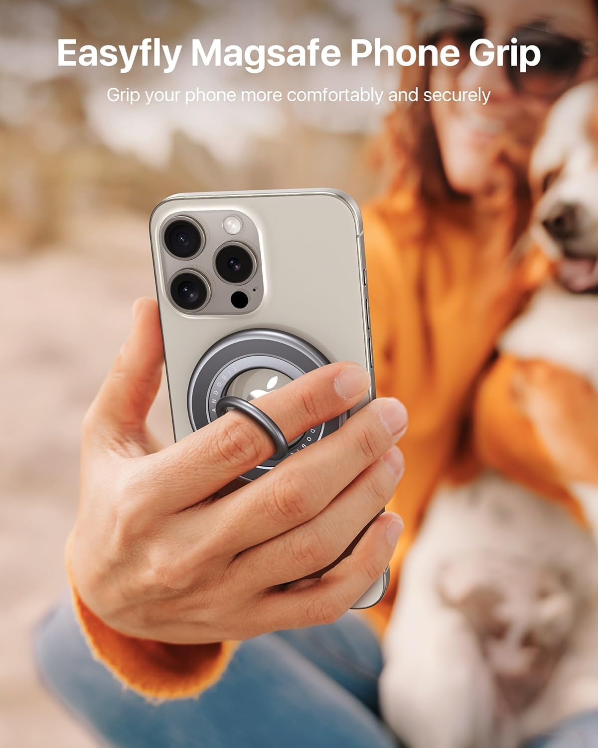 - Compatible with MagSafe: The ring grip works with MagSafe devices (iPhone 16, iPhone 16 Pro, iPhone 16 Pro Max, iPhone 16 Plus, 15, 15 Pro, 15 Pro Max, 15 Plus, 14, 14 Pro, 14 Pro Max, 13, 13 Pro, 13 Pro Max, 12, 12 Pro, 12 Pro Max) and certified MagSafe phone cases. The MagSafe phone grip is also compatible with non-magnetic phones and standard phone cases with thin metal rings (provided) on their backs
