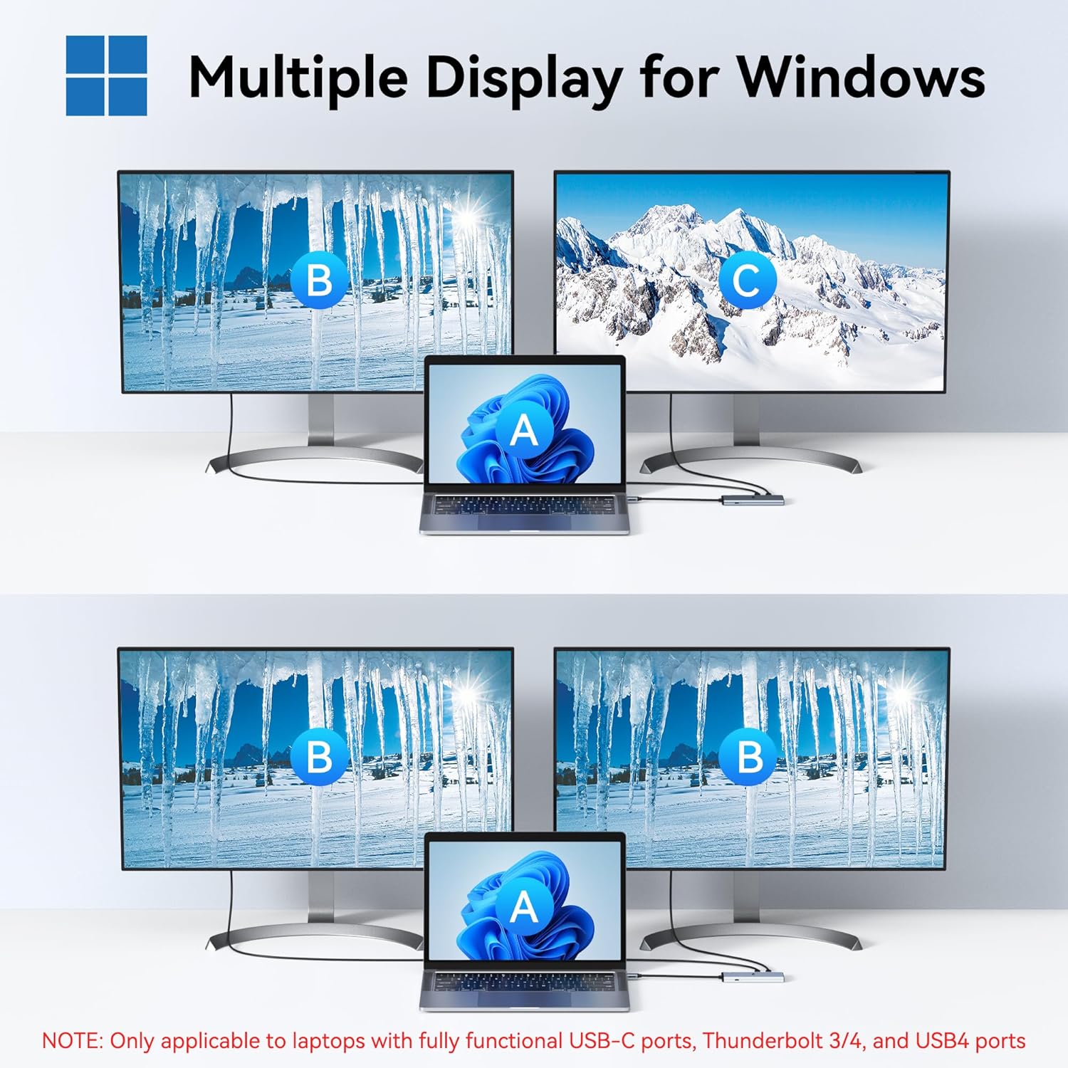 - MST/SST USB C Splitter for Windows: This USB C video hub supports MST/SST dual-display modes exclusively for Thunderbolt 4/USB 4 Windows laptops, enabling 4K/60Hz on two USB C monitors. MST functionality is NOT supported on macOS systems