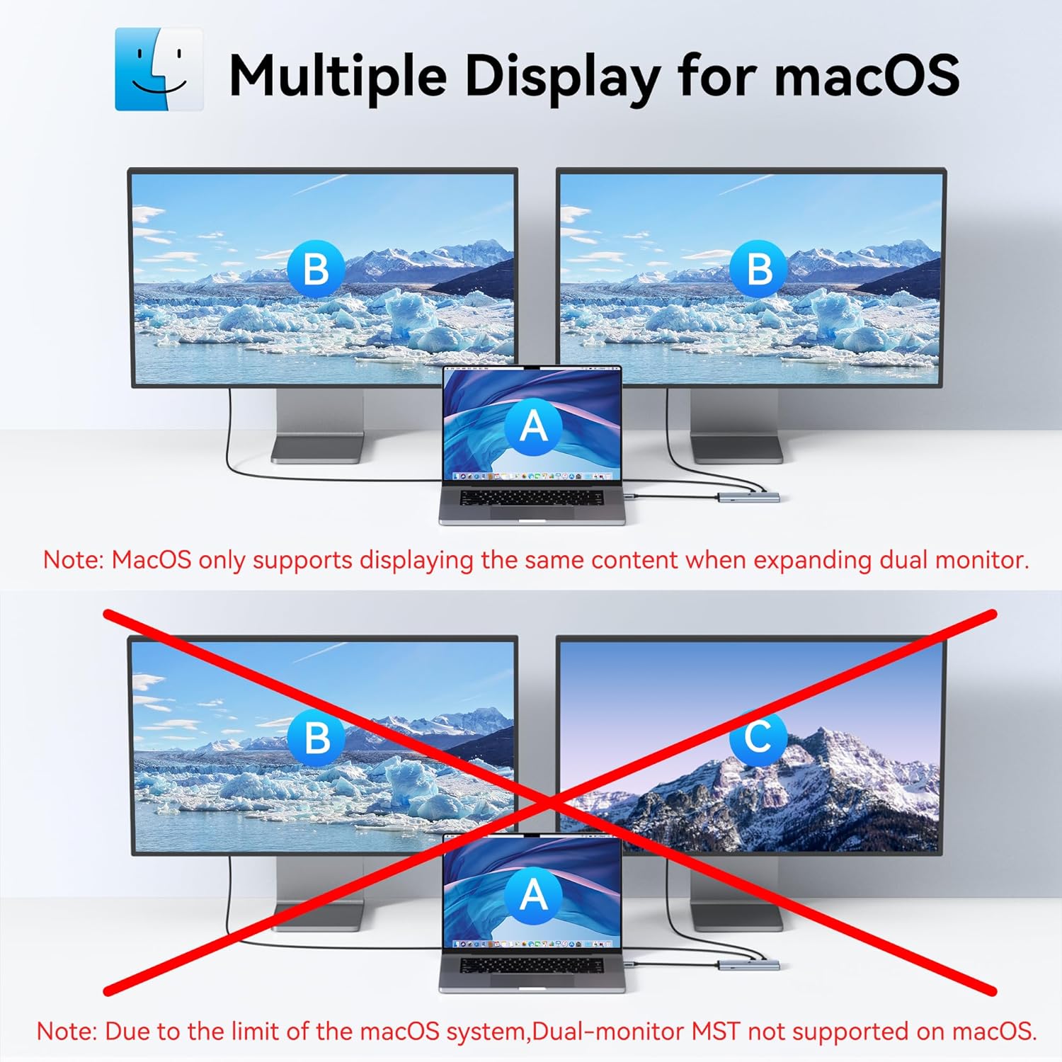 - Future-Ready USB C Video Hub: Designed for Thunderbolt 4/USB 4 laptops, this hub supports cutting-edge USB C monitors and devices. Requires DP Alt Mode and Thunderbolt 4/USB 4 compatibility. Dual-monitor MST not supported on macOS