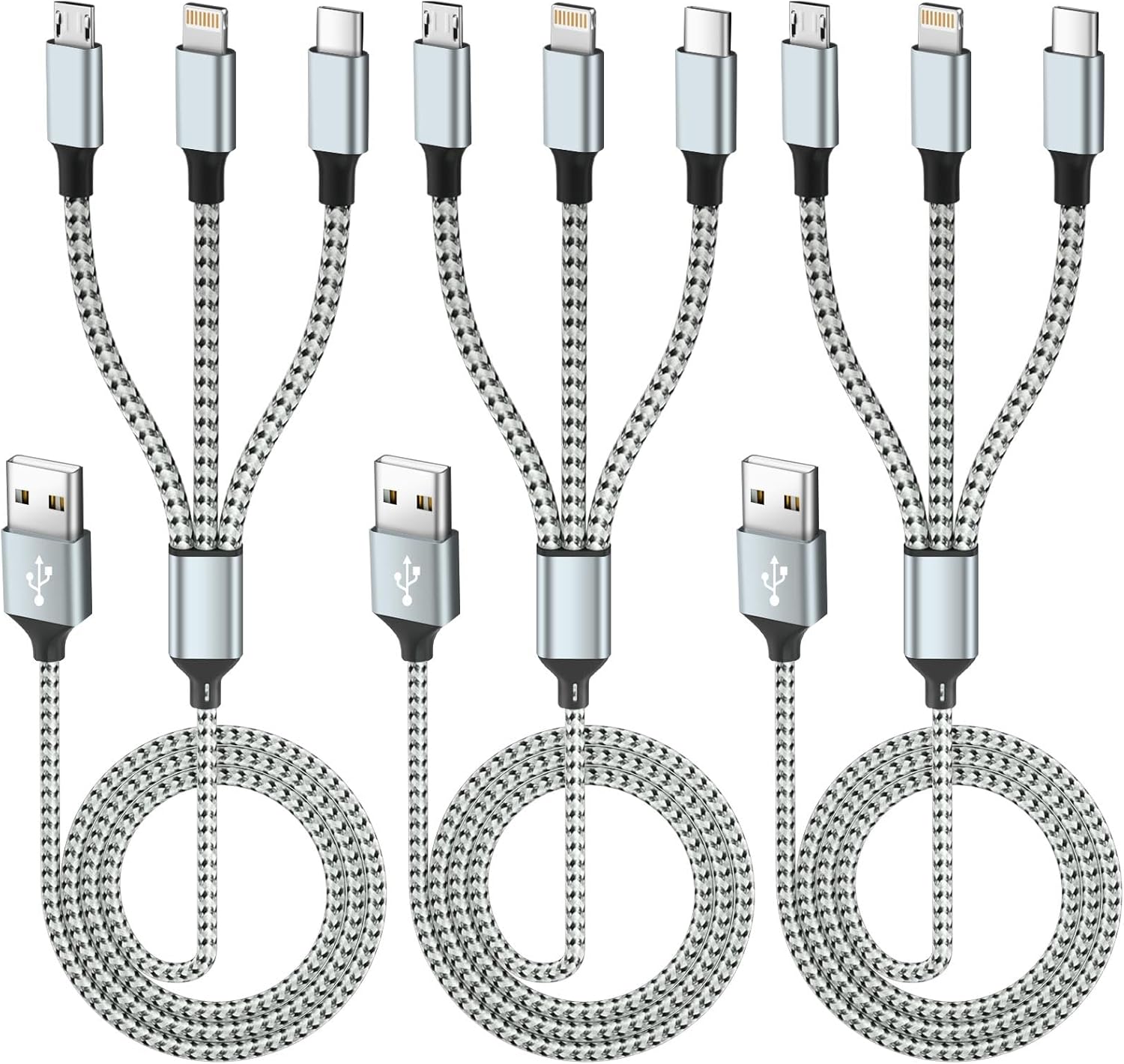 Multi Charging Cable(3Pack 4FT), 3 in 1 Charging Cable for Multiple Devices, Multi Phone Charger Cord with Type-C, Micro USB and IP Port for iPhone 16/15/14/13/iPad/Android/Tablets and More