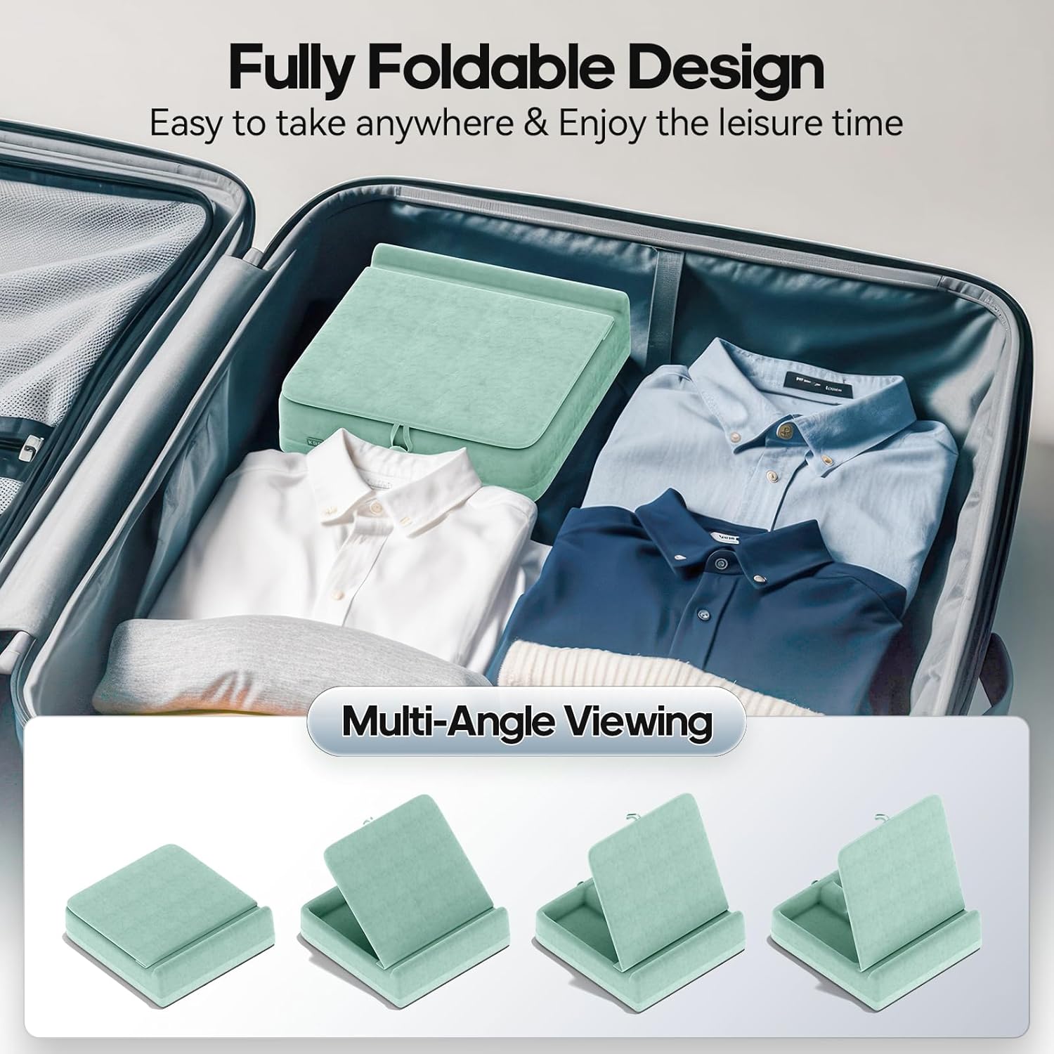 - Foldable Design - Our newly upgraded tablet stand for lap is lighter and more portable, fully foldable design, easy to carry, can be easily put into luggage without taking up space, perfect for traveling. The portable iPad pillow stand is perfect for carrying around for long trips in the car or on the plane.