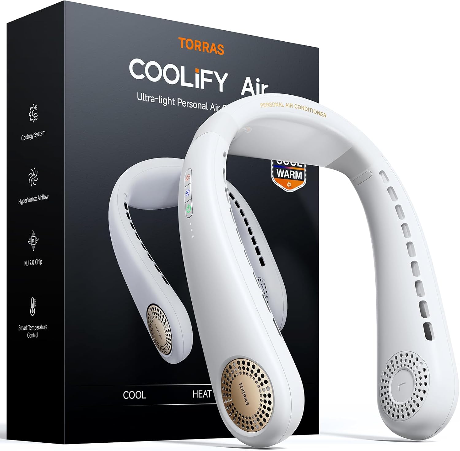 TORRAS COOLiFY Air 2025 Upgraded Neck Fan Air Conditioner, Dual-Airflow Pro Cooling, Ultra Light Portable Fan Rechargeable, Personal Cooling Fan Travel Essentials, Ivory