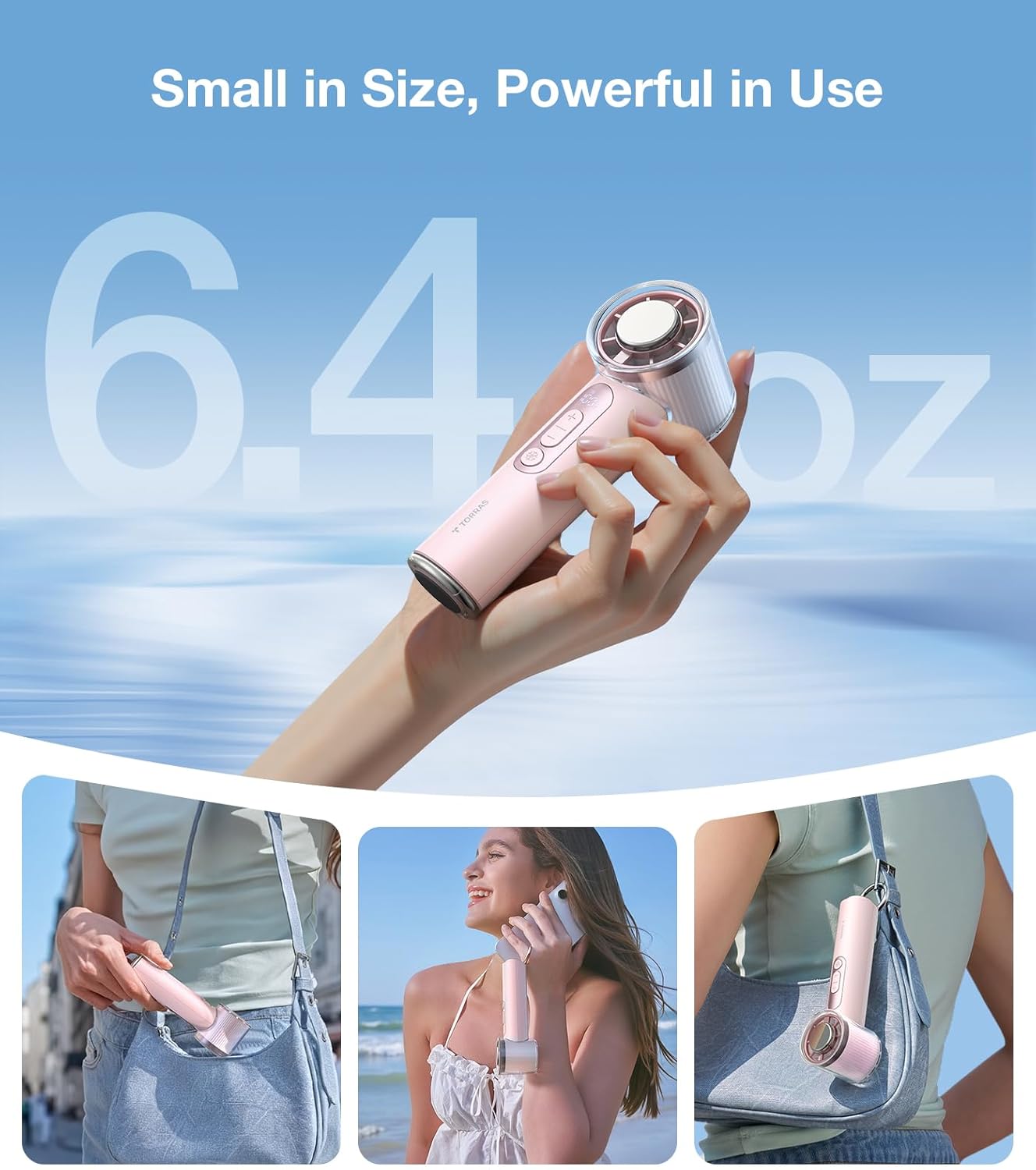 TORRAS COOLiFY iva Handheld Fan with Ice Cooler, [Chill by 50F] 0-100 Speed, Super Mini Powerful Portable Fan, 5000mAh Rechargeable Hand Held, Travel Essentials, Gifts for Dad Husband, Pink