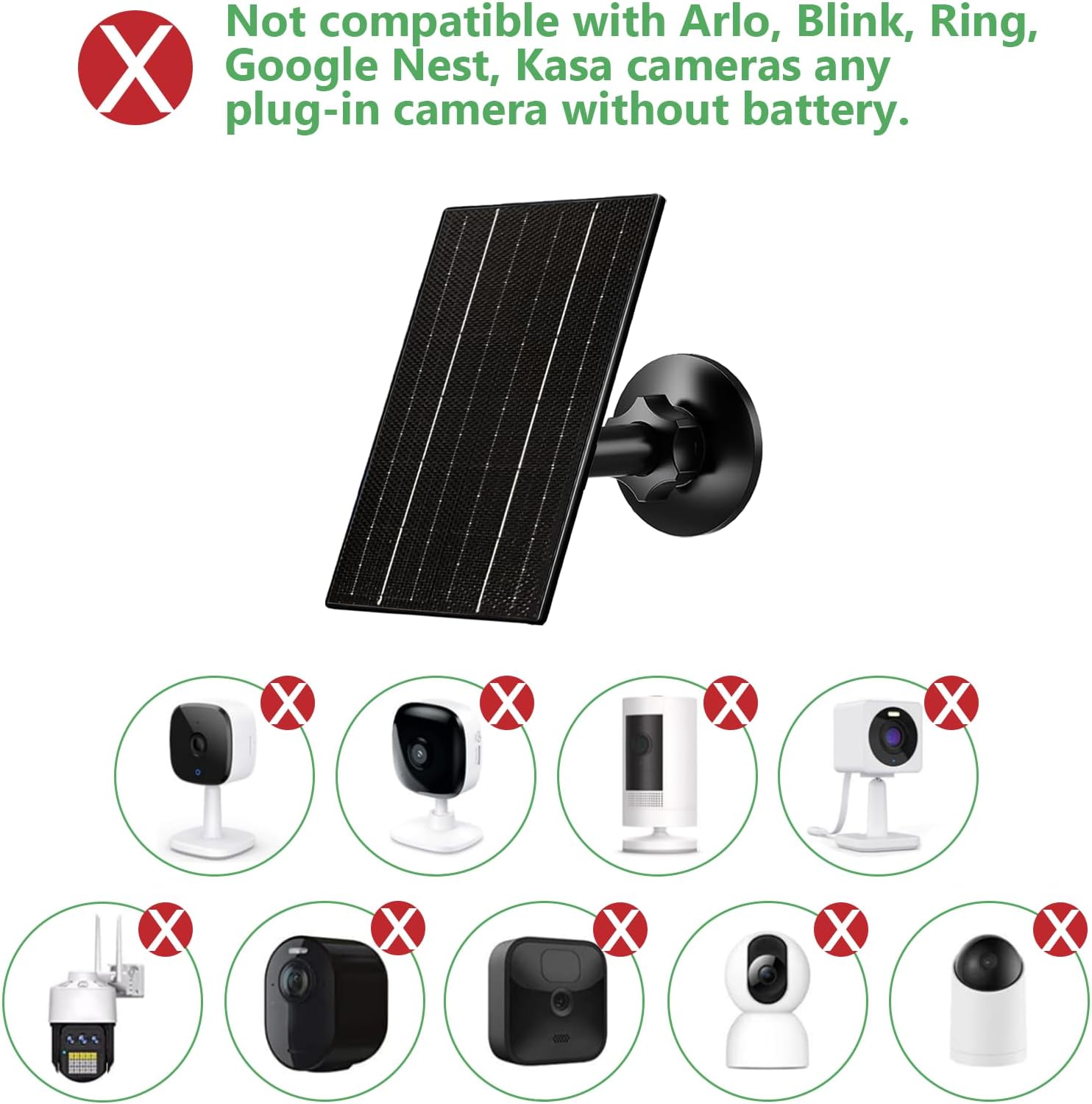 - Compatibility: The 4W USB solar panel compatible with Micro USB & USB-C Port security camera. Note!!! This solar panel charger is not compatible with Arlo, Blink, Ring, Google Nest, Kasa cameras, or any plug-in cameras without batteries.