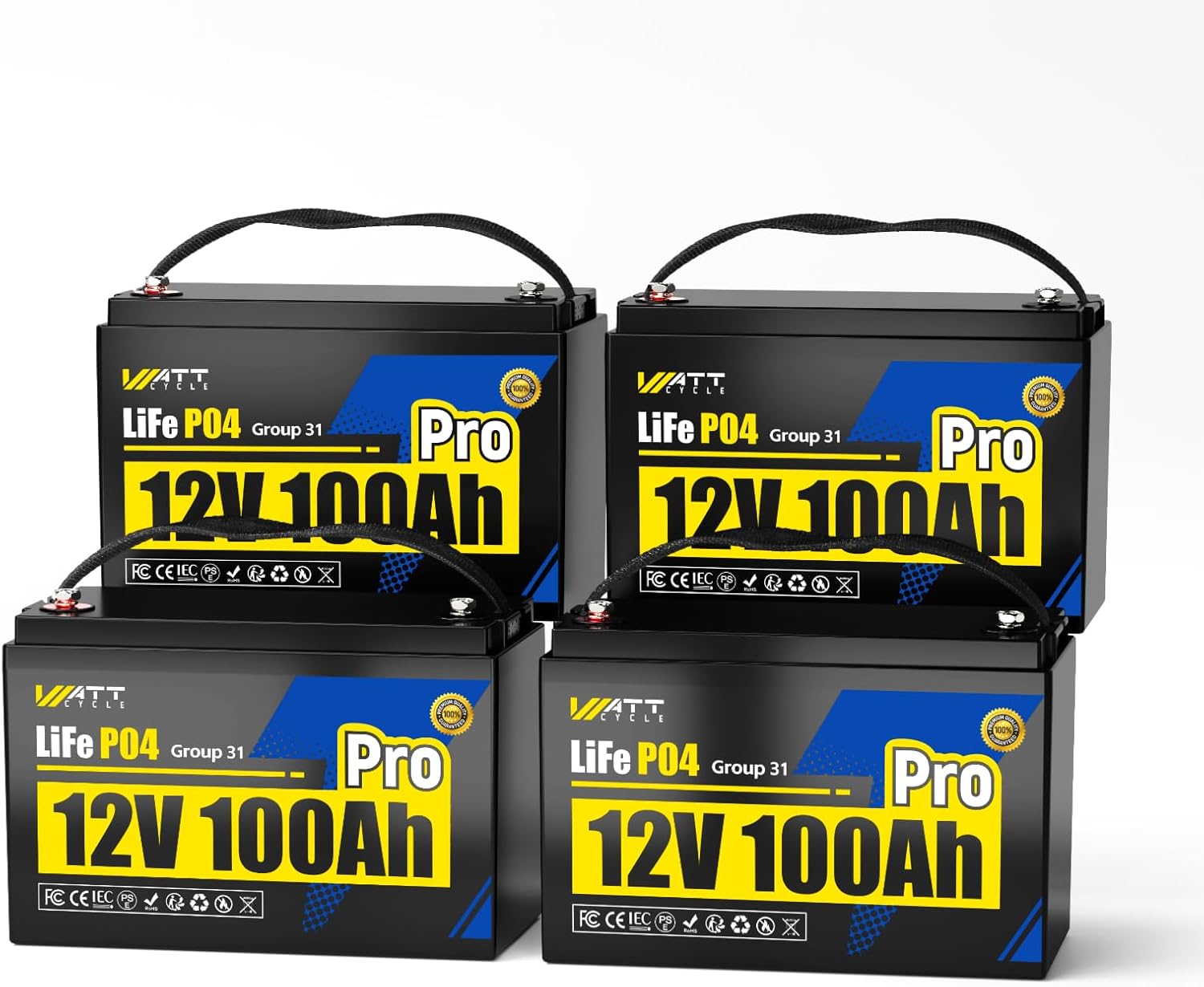 - 4PACK-High-Capacity Deep Cycle Power: The WattCycle 100Ah LiFePO4 Battery delivers outstanding power with over 15000+ deep cycles, ensuring a lifespan of up to 10 years. Ideal for long-term use in RVs, golf carts, boats, and off-grid home energy storage systems.