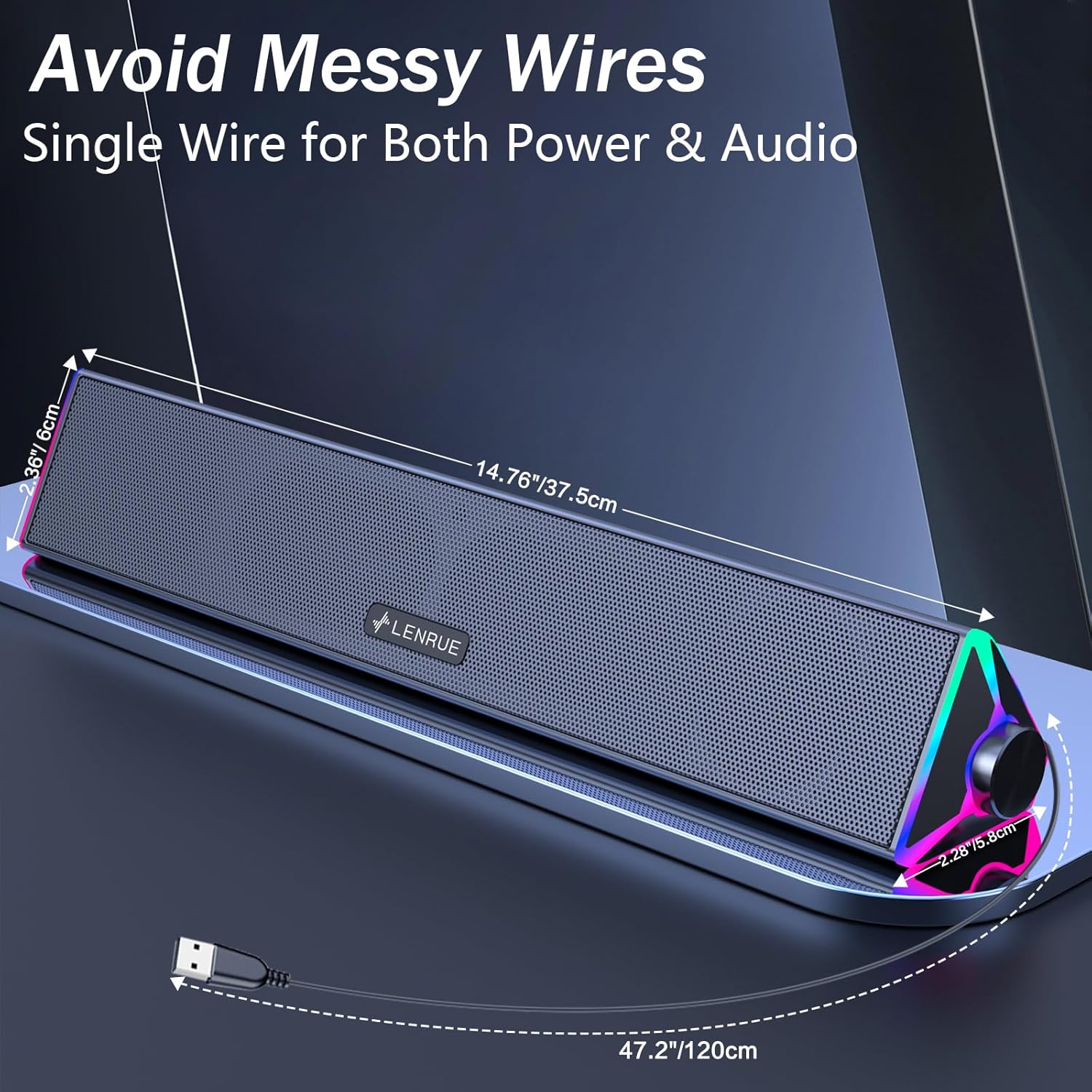 LENRUE Computer Speakers for Desktop,PC Speakers with Single USB for Power and Stereo Sound,Touch Lights Gaming Speakers Sound bar for Desktop PC Monitor Laptop(USB-C Adapter Included)