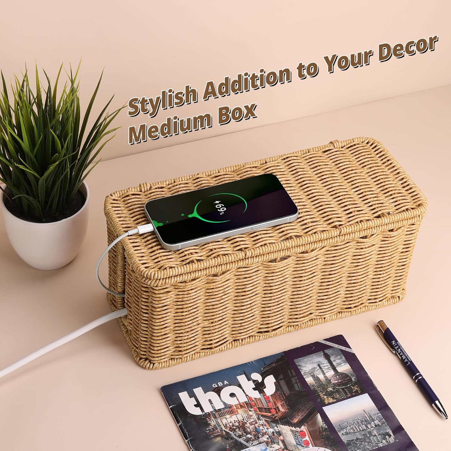 - Enhances Your Decor: With a sleek faux rattan weave, this cable box seamlessly fits various decor styles, from farmhouse to modern beach themes. ZhiYo wire organizers help hide unsightly cords, adding a decorative touch to your workspace or living area