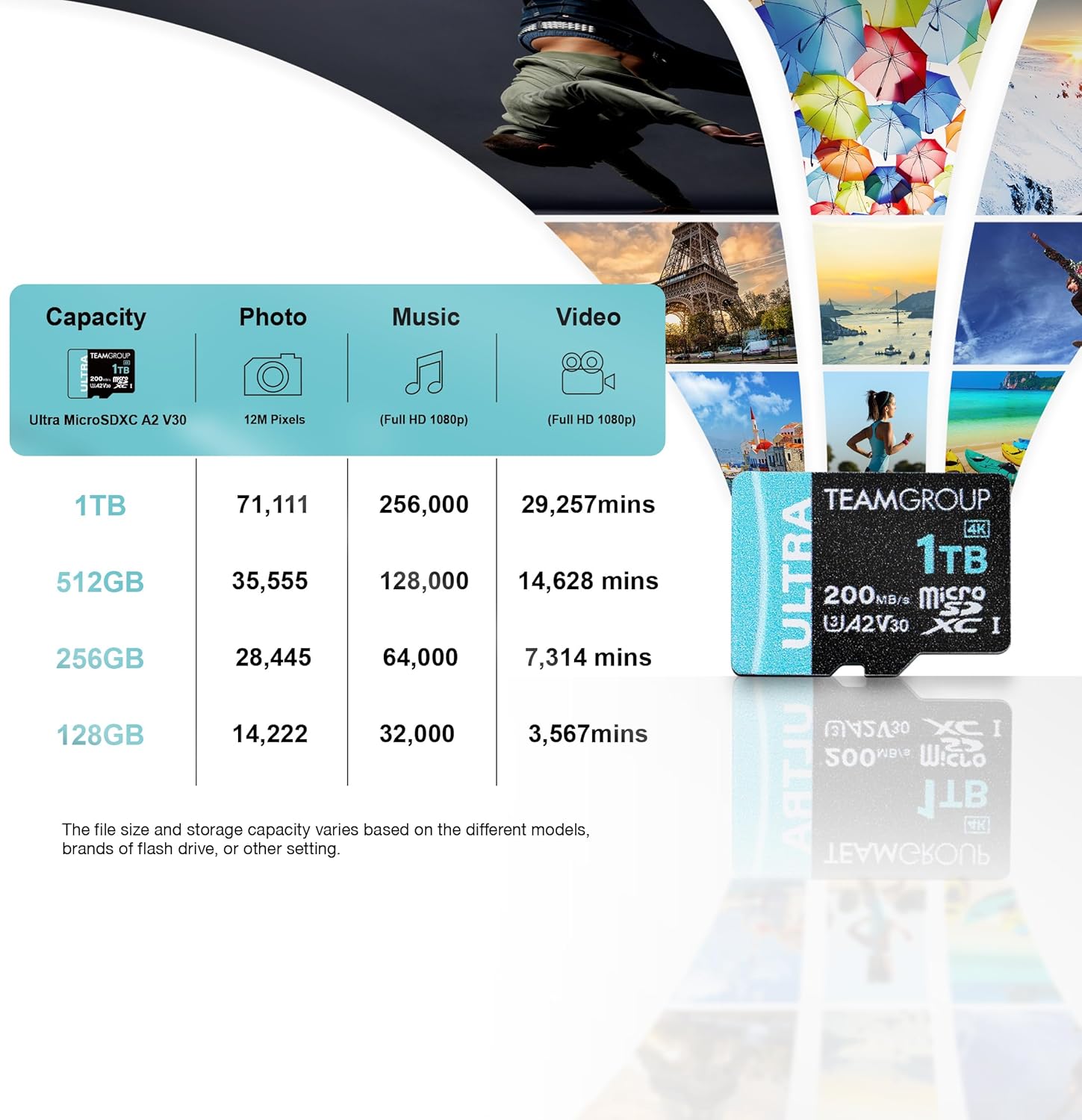 TEAMGROUP A2 Ultra Card 1TB Micro SDXC UHS-I U3 A2 V30, R/W up to 200/170 MB/s with Adapter TULMSDX1TIA2V3022503