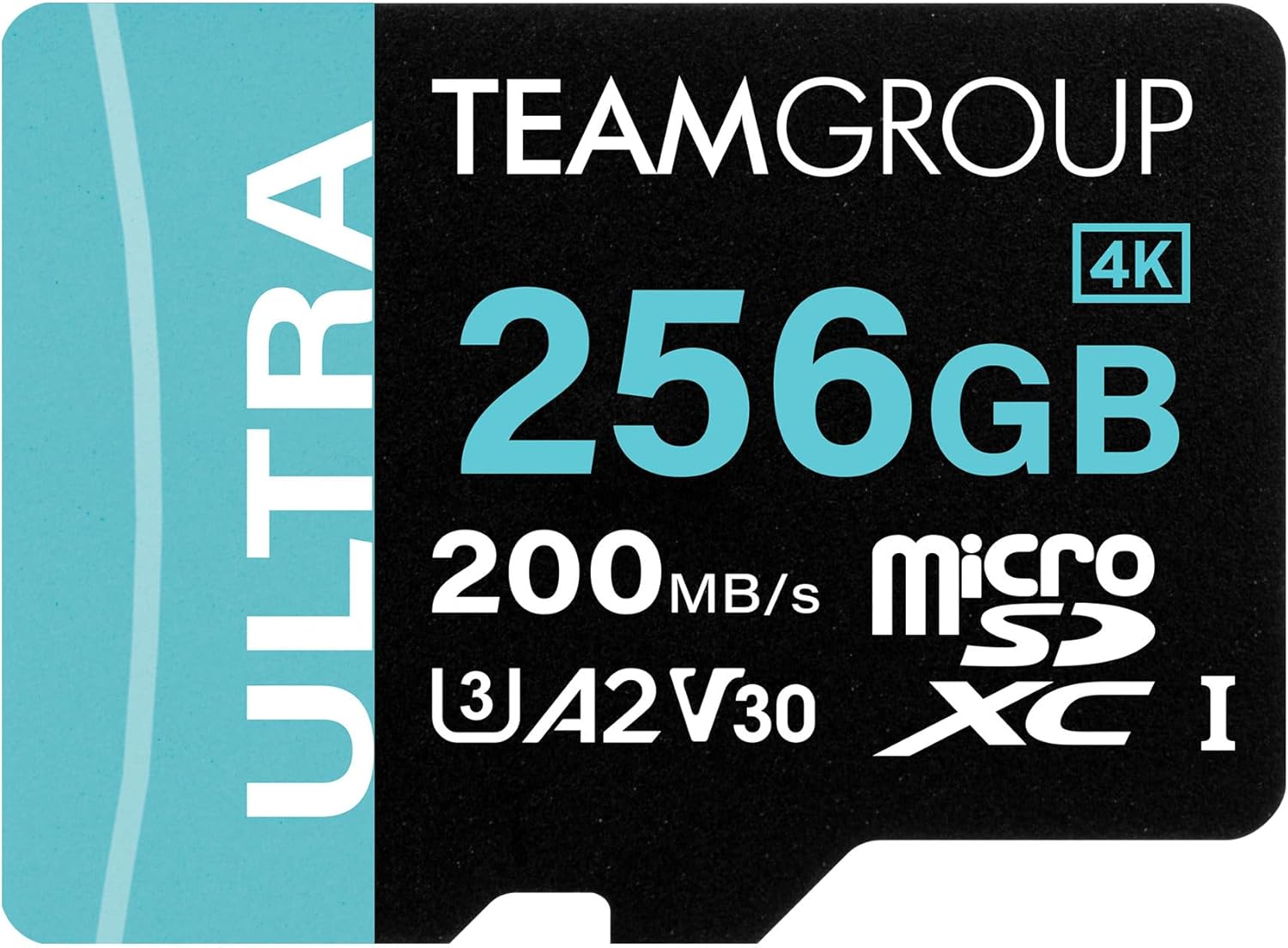 TEAMGROUP A2 Ultra Card 256GB Micro SDXC UHS-I U3 A2 V30, R/W up to 200/150 MB/s with Adapter TULMSDX256GIA2V3022503