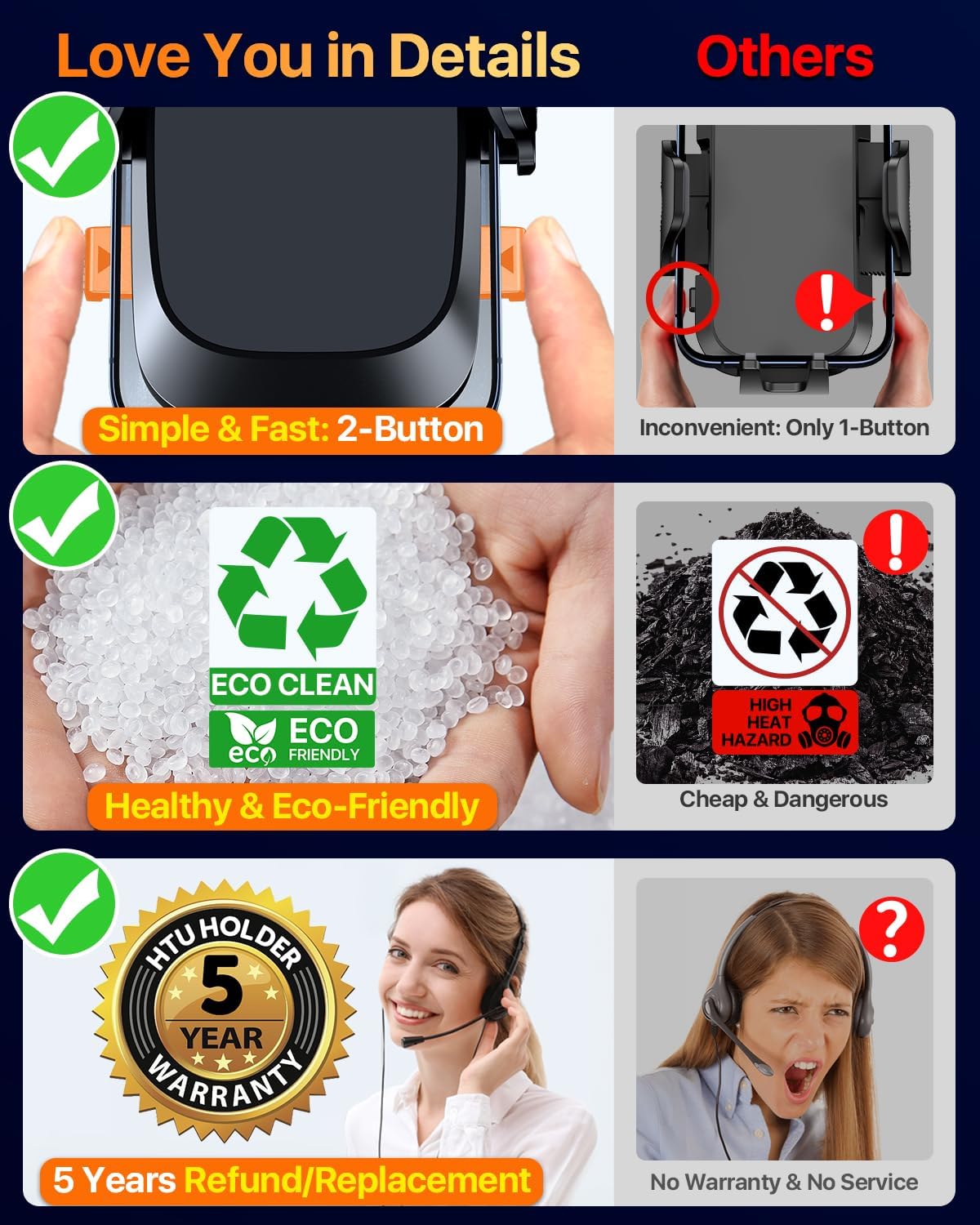 HTU 2025 Best Car Phone Holder 【Ultimate 5-in-1 & Upgraded 100+LBS Strongest Suction】【True Military-Grade & Safety Cert】 360° Windshield Dashboard Vent Mount for iPhone Android & Truck, Deep Black