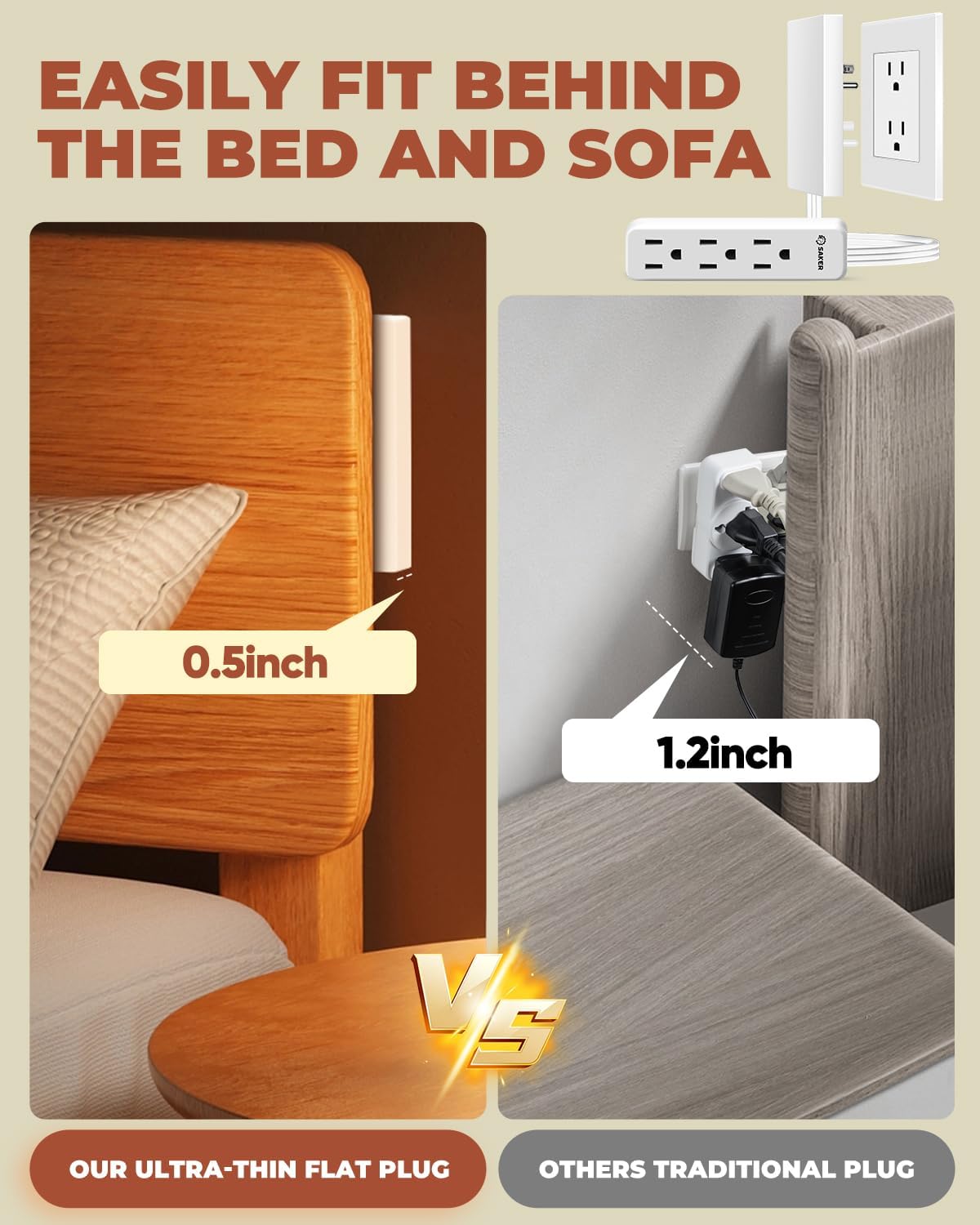 - 【Certified for Safety】Our flat plug power strip is ETL certified for safety, with our commitment to quality, rest assured that our flat extension cord provides the utmost safety for your devices. Choose confidently with our outlet cover extension cord .
