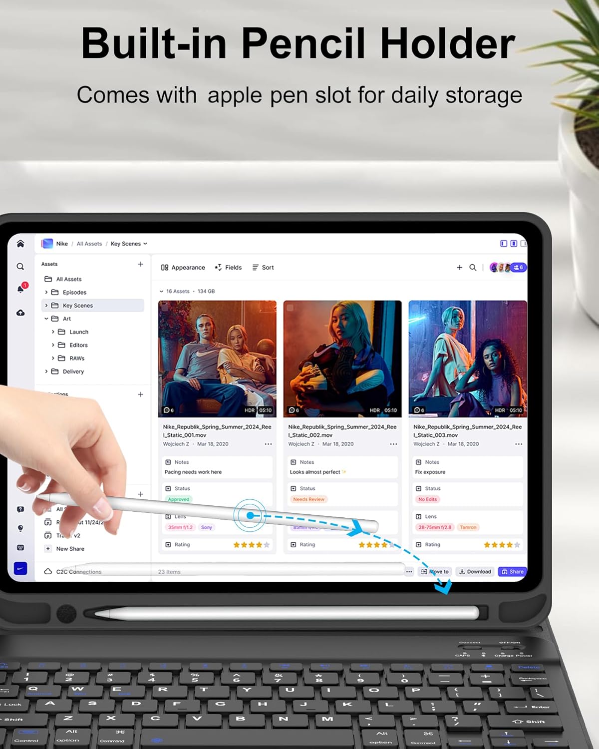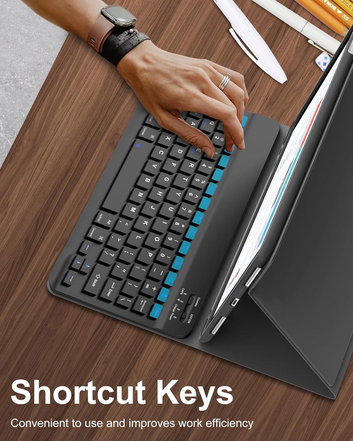- 【iPad 10 Keyboard with Shortcuts】Its full row of iPad 10th gen keyboard shortcuts makes you more efficient, allowing you to adjust brightness levels, control media, adjust volume, copy, paste and more with just one tap.