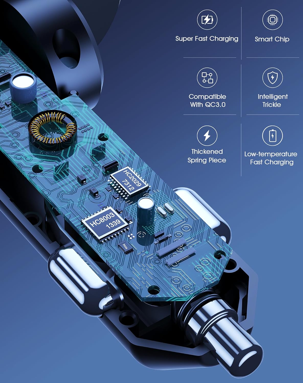 - SAFE SMART CHIPS & REAL-TIME VOLTAGE MONITOR - Safety is always our top priority! Our car USB charger is engineered with advanced smart chips that protect against overcharging, overcurrent, overheating, and short circuits. Also provides a voltage monitor, allowing you to monitor your car's battery health in real-time, ensuring optimal battery performance and longevity for both your car and phone. AND this retractable car charger only starts charging when the car is started