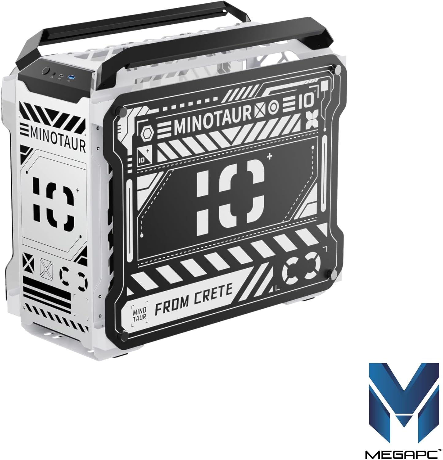 MegaPC Mino Open-Frame ATX Gaming Case โ Industrial Design, Tempered Glass Panels, High Airflow, ARGB Lighting, USB-C Port (Black/White/Print Stream, with Fans Only)