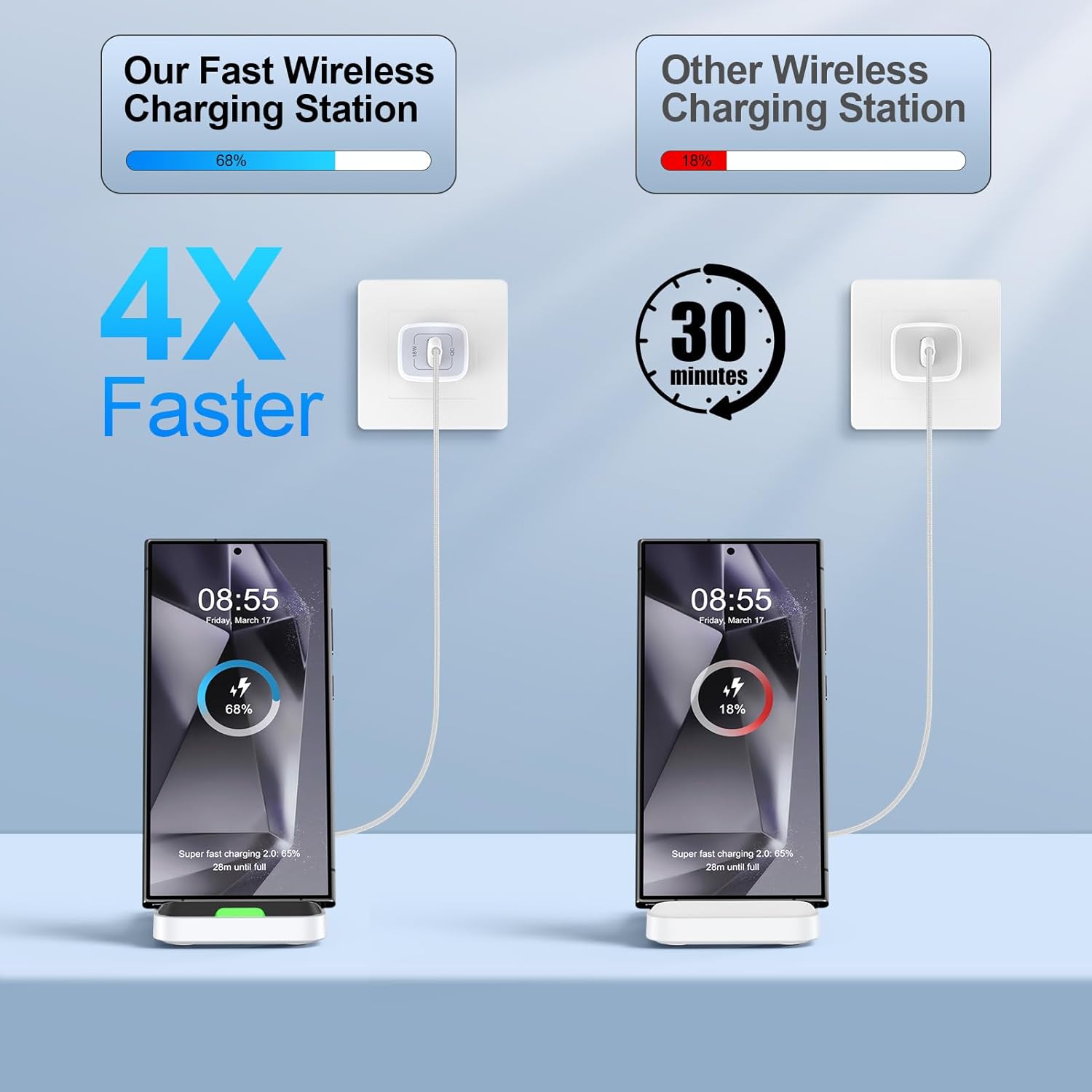 - 【Widely Compatibility】Wireless charging station for Samsung Galaxy S25,S25 Ultra,S25+,S24 FE,S24,S24+,S24 Ultra,S23,S23+,S23 Ultra,S23 FE,S22,S22+,S22 Ultra,S21,S20,S10,S9,S8,Note 20/10 Z Flip 7 FE/7/6/5 Z Fold 7 SE/6/5;Motorola Moto Razr Plus 2024,Razr 2024,Razr 2023,Edge 2024,G Stylus 2024,Razr 50 Ultra,Edge 50 Ultra/50 Pro/50,G Power 5G 2024,iPhone 16/16 Plus/Pro/Pro Max/15 Plus/Pro/Pro Max/14/13/12/SE 2020/11/XS/XR/X/8;Google Pixel 10/10 Pro/10 Pro XL/10 Pro Fold/9 Pro XL Fold/9 Pro/9/8a/8/8 pro/7a/7 Pro/6 Pro/5/4/4 XL/LG V60;other smartphones or wireless earbuds