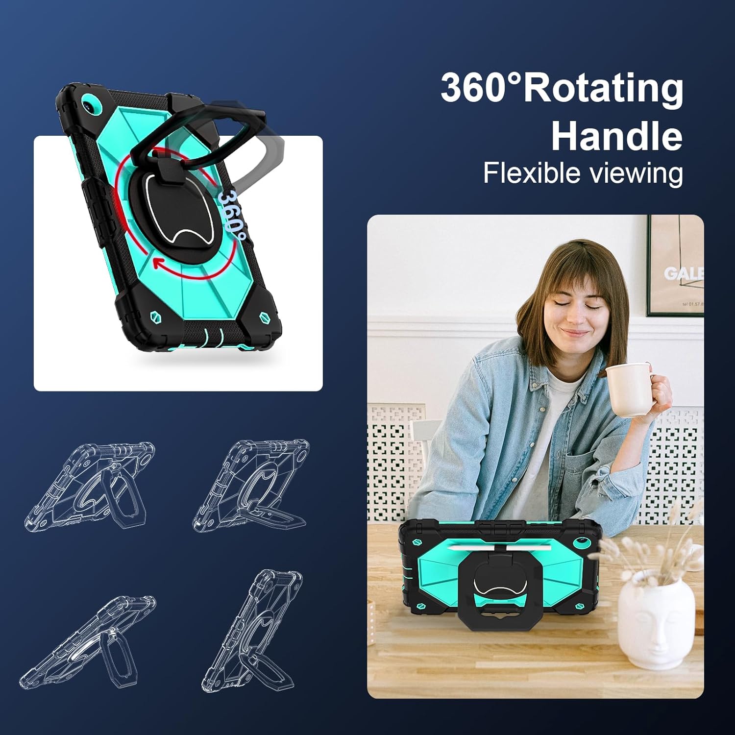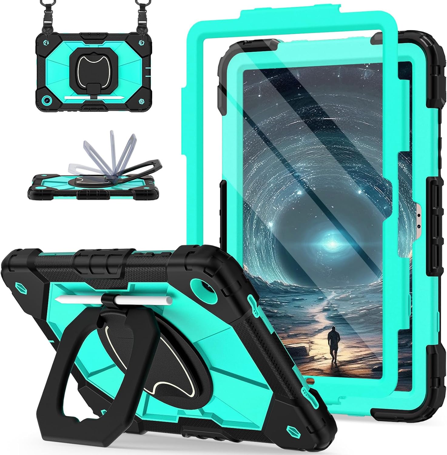 Case for Galaxy Tab A9 Plus Case 11 Inch, Rugged Galaxy A9+ Tablet Case with Screen Protector 360 Rotating Stand Shoulder Strap Pen Holder, 2023 Model(SM-X210/X216/218), Black Mint