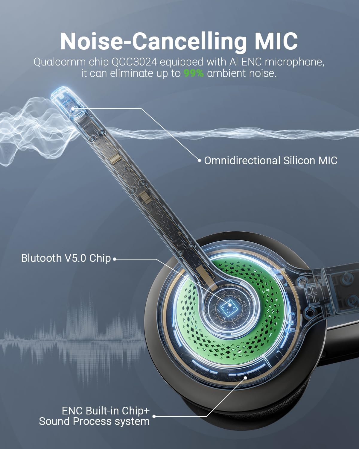 - ✅【Qualcomm cvc8.0 Noise Cancelling Microphone】JIAMQISHI EH02P wireless headset for computer Qualcomm chip QCC3024 equipped with AI environmental noise cancelation microphone, it can eliminate up to 99.99% of the ambient noise. So you can hear and be heard clearly wherever you are.