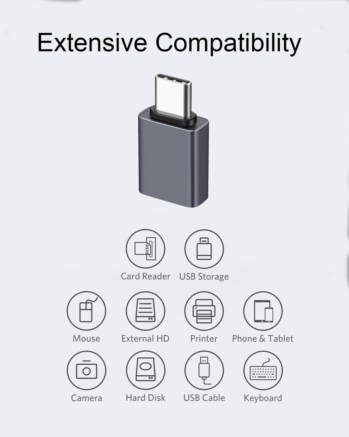 • Widely Compatible: Transform any USB-C port into a USB-A port and connect up a wide range of USB-A devices including external hard drives, phones, mice, printers, Type C laptops, tablets, OTG phones including Samsung Galaxy S24,S23,S22,S21,S20, MacBook Pro after 2016, MacBook Air after 2018, iPad Pro and can be used with 2 mm thick phone cases and more.