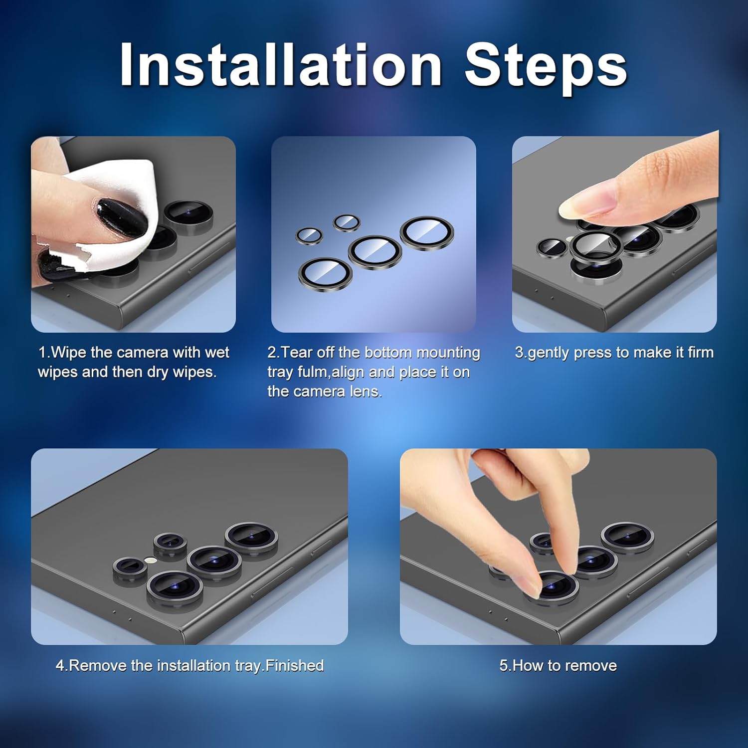 - 【Easy Installation & Lifetime Service】The lens protectors are preset in an easy installation tray. Simply peel off the plastic plate, align and firmly press down the lens protectors to the camera lenses, and then remove the tray. If you have any question or product problem, just contact us and we will reply to you as soon as possible.