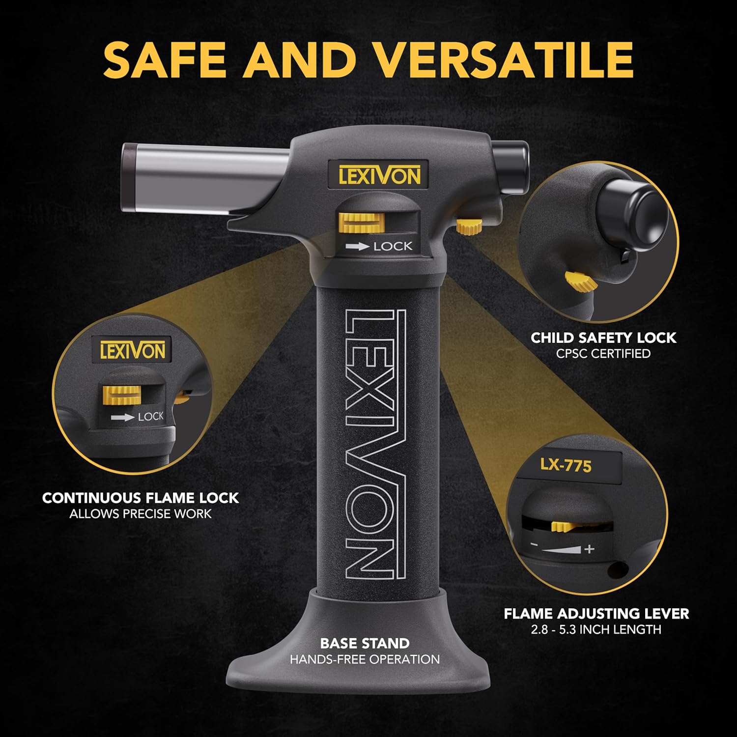 LEXIVON Butane Torch Lighter, Refillable Kitchen Cooking Torch | Self-Igniting with Safety Lock and Adjustable Flame | Pro-Grade Aluminum Tank (LX-775)