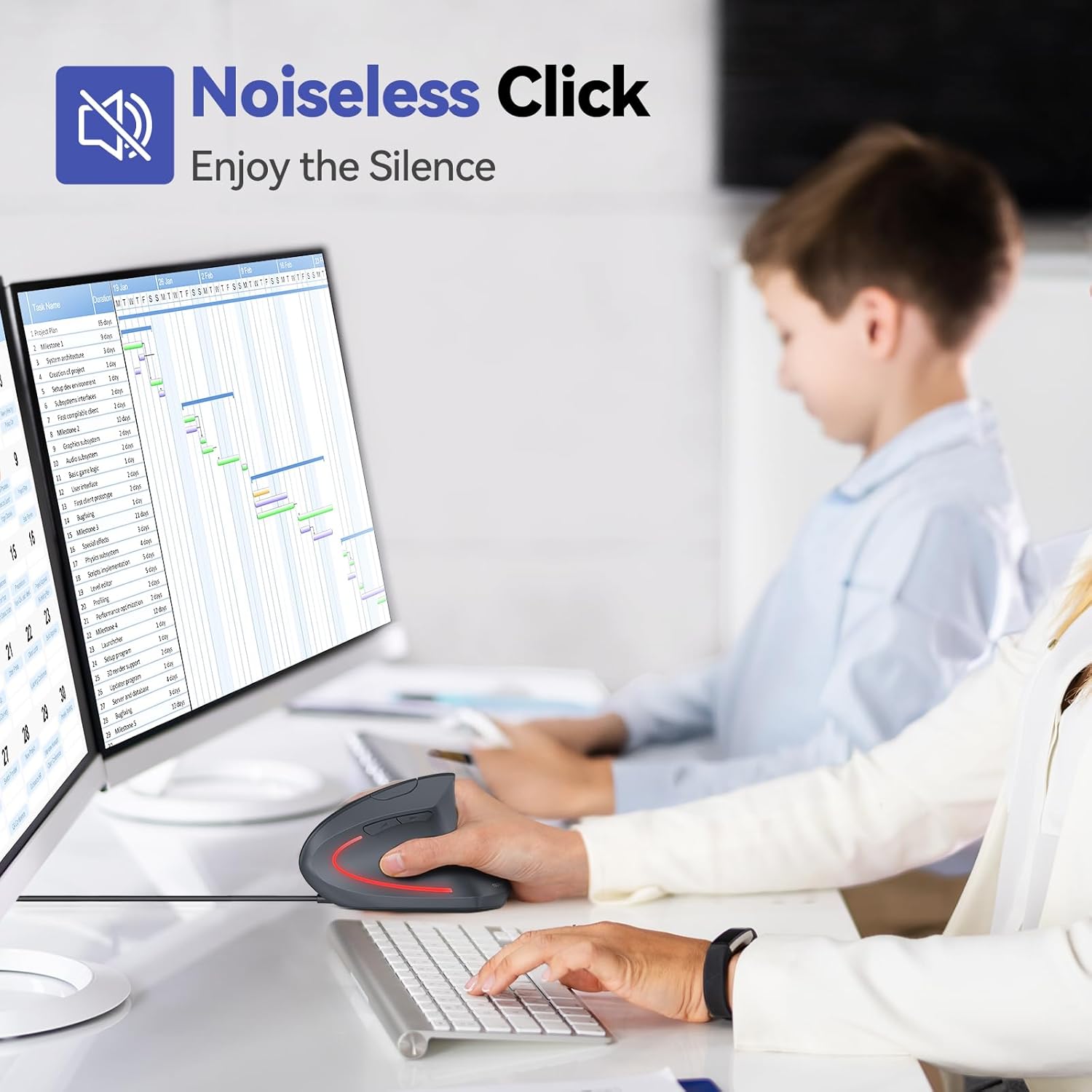 - [Silent Mouse] - The clicks of this vertical mouse are virtually silent, allowing it to be used even in quiet environments like libraries. Using this wired ergonomic mouse reduces disturbance to oneself and others, enabling better focus on the task at hand.