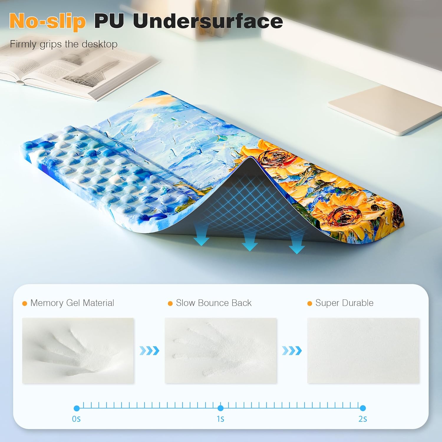 - Sticky PU base grips your desk like glue so your keyboard pad stays put during intense work sessions or gaming marathons. The silky-smooth top layer feels crazy comfy against your skin - like your hand's chilling on a cloud while you use it. Perfect for sweaty-palmed coders, precision-obsessed gamers and other people who use computers for long periods of time.