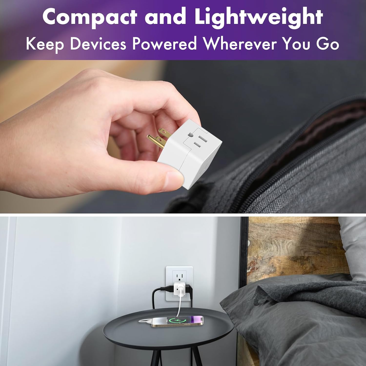 - 3-Outlet Multi Plug Expander: Add three grounded AC outlets to any standard wall outlet, perfect for powering multiple devices at once in a compact space