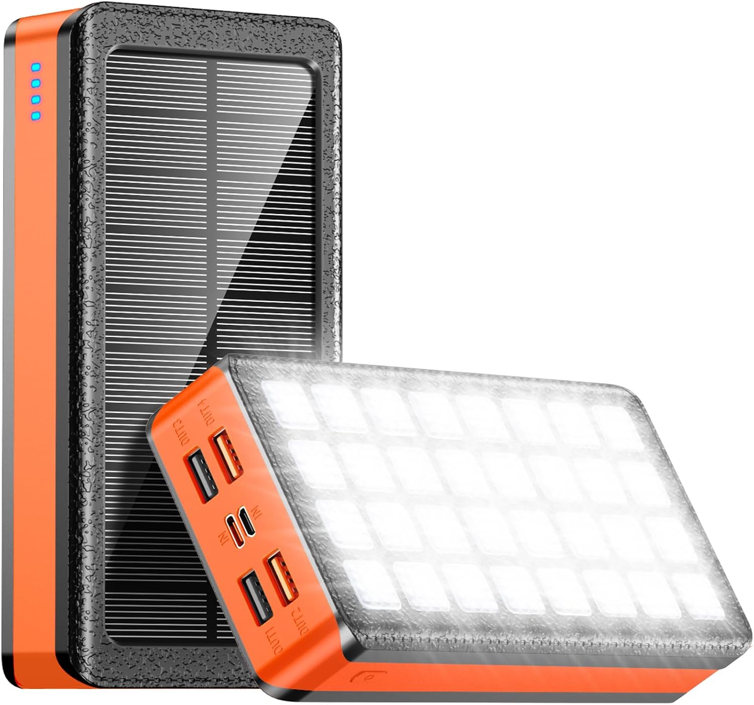 Solar Charger Power Bank 66800mAh Portable Charger with USB-C in/Output 22.5W QC3.0 Fast Charging 5 Out Ports Battery Pack Built-in 32 Led Flashlights for iPhone Samsung Tablet Camping