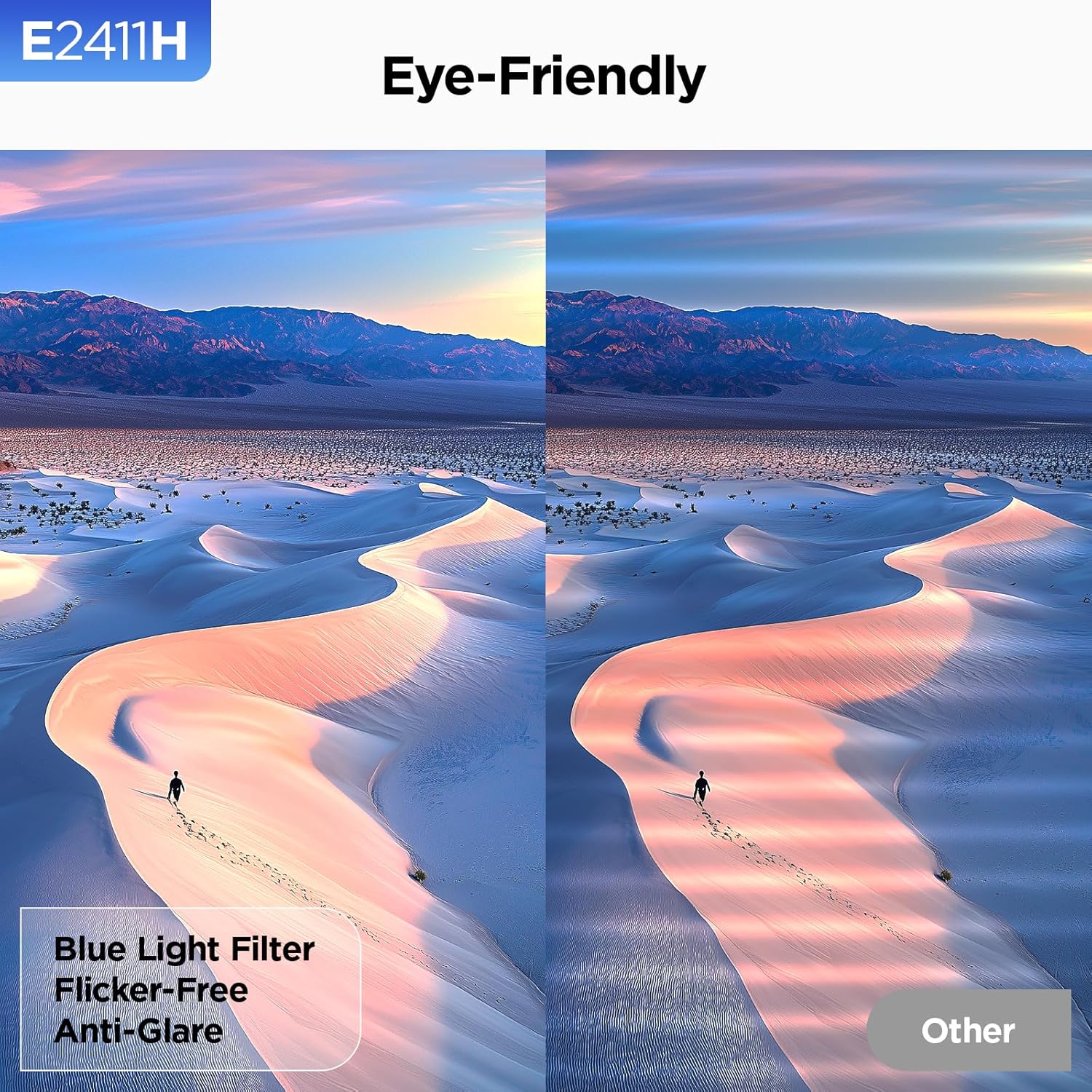 - Eye-Friendly: This 24" monitor is equipped with anti-blue light and anti-glare technology, effectively reducing eye strain and safeguarding vision health by minimizing blue light emissions and optimizing screen brightness. During extended work sessions, the eye protection mode helps maintain clear vision and enhances work efficienc.