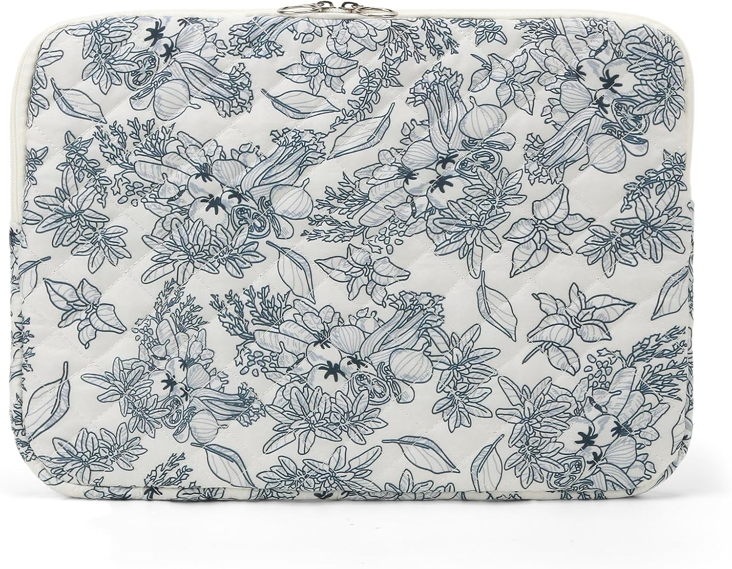 Puffy Laptop Sleeve 13-15.6 Inch Cute Quilted Laptop Protective Case Padded Floral Computer Sleeve for MacBook (B-Dark Blue, 15 Inch)